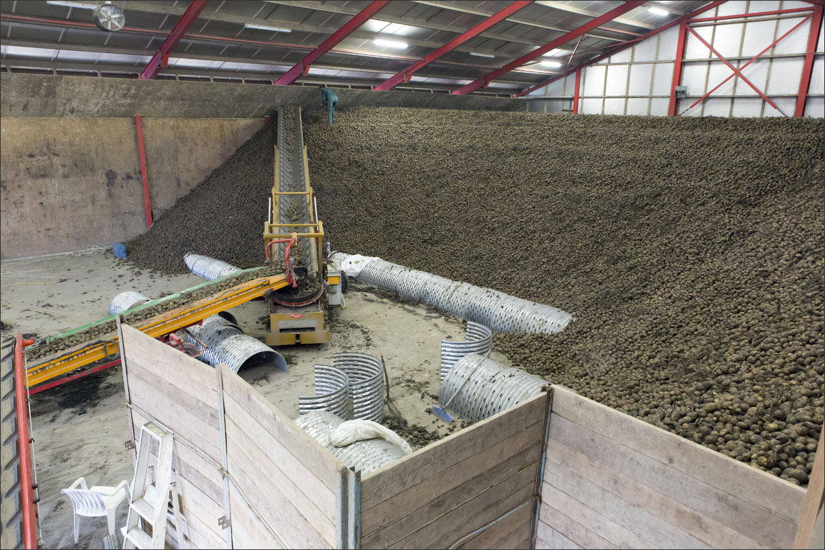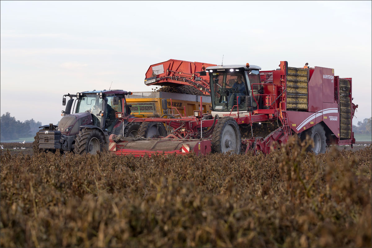 Het rooien en inschuren van de aardappelen op akkerbouwbedrijf Bos uit Zevenhuizen.