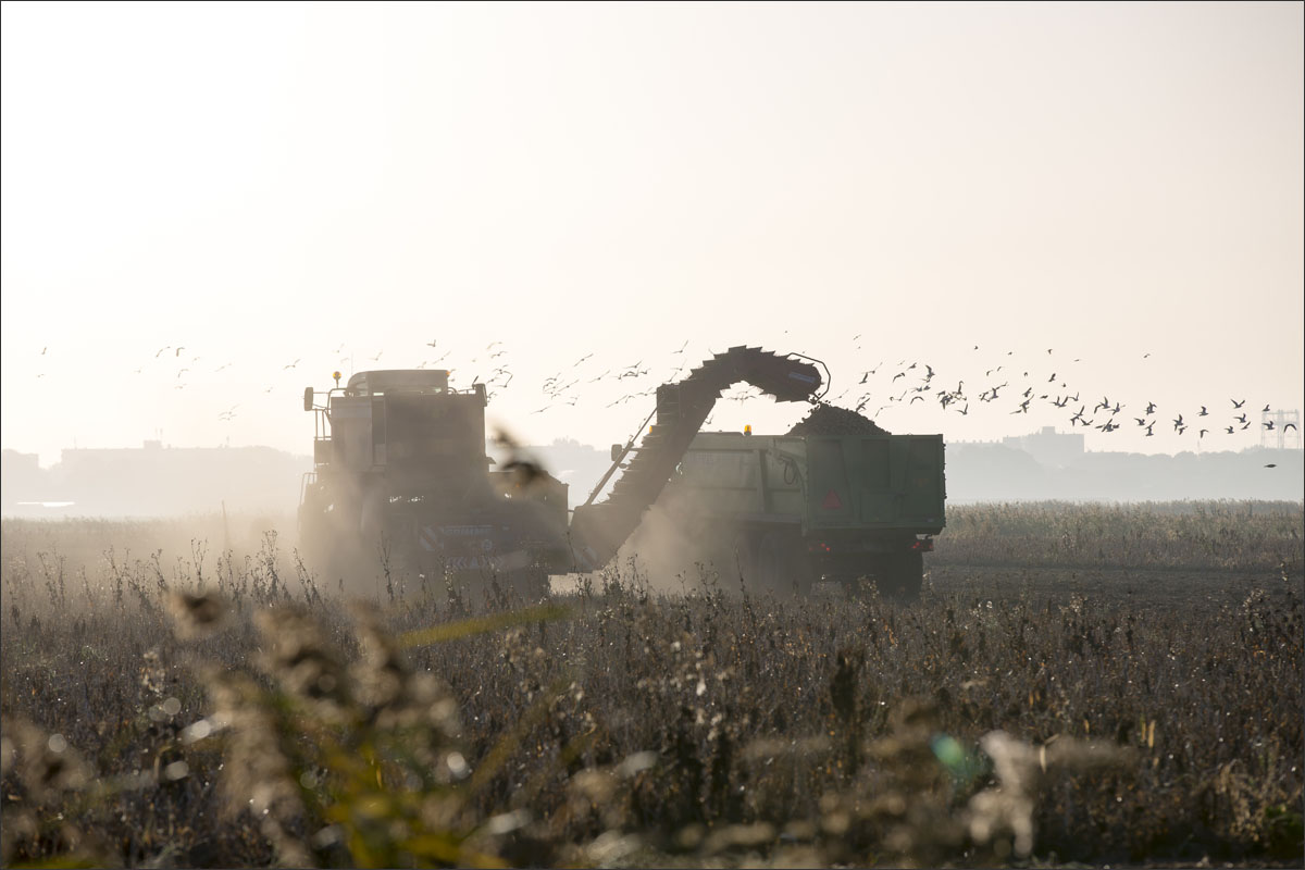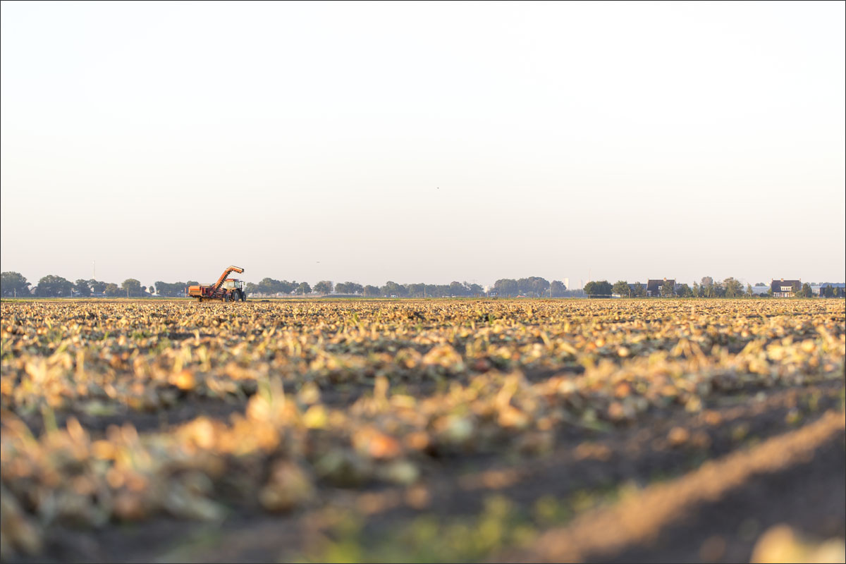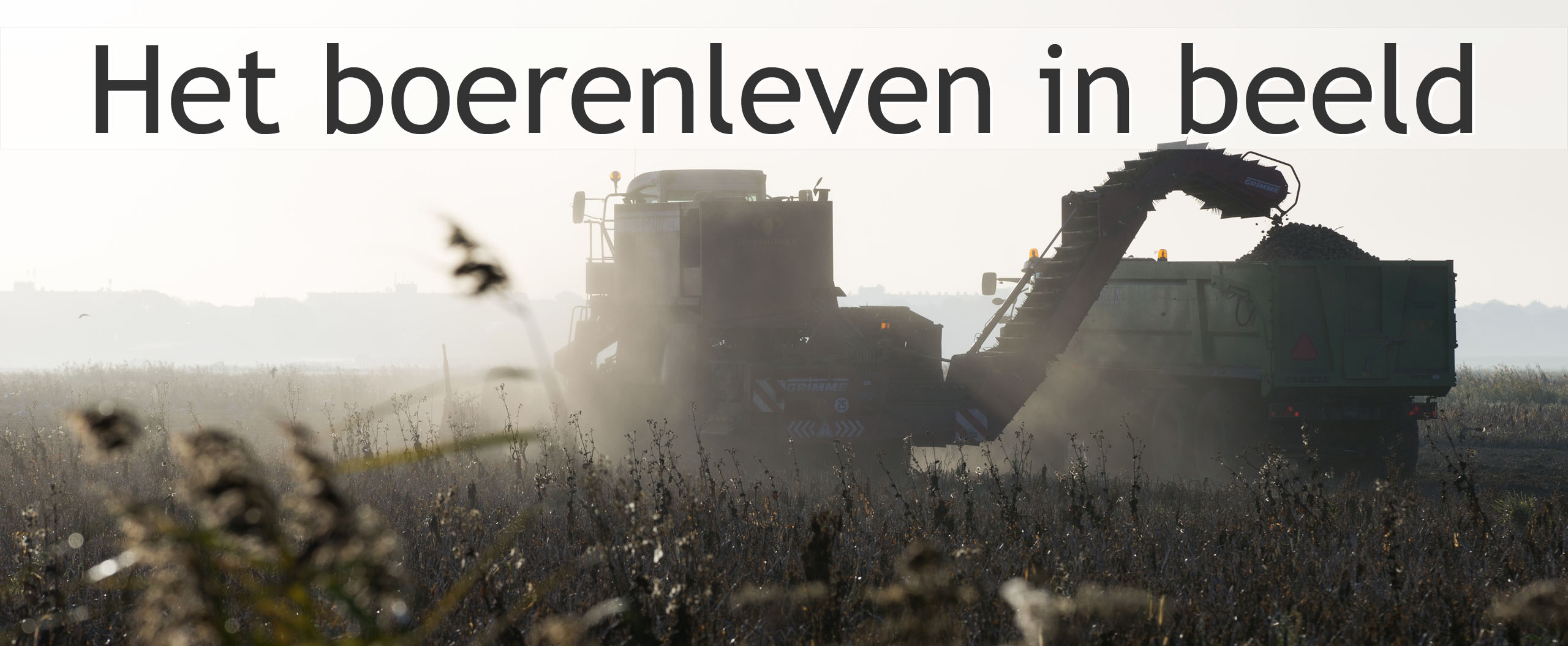 Foto’s van o.a. uien en aardappelen rooien, koeien en schapen in de mist, spruitenteelt en boerenlandschappen.