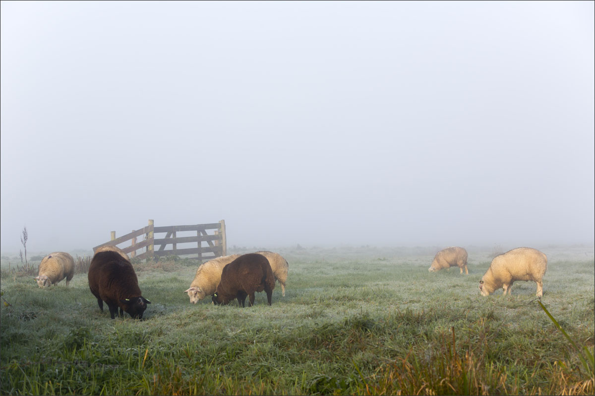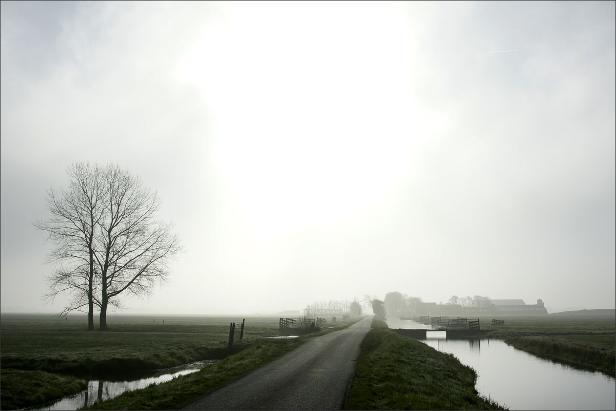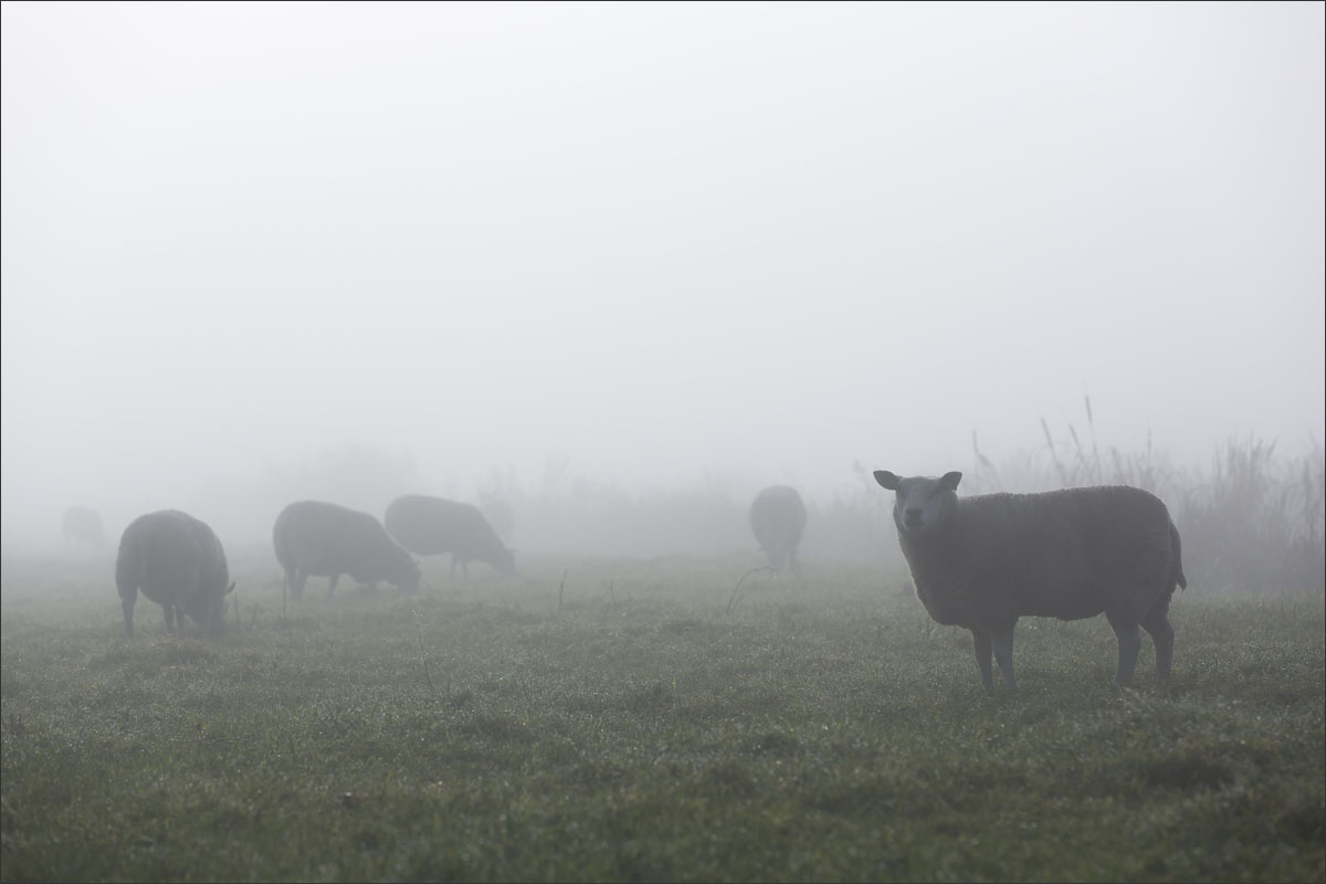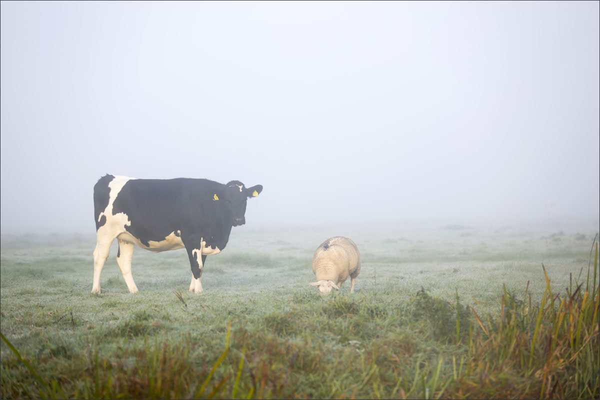 Foto’s van o.a. uien en aardappelen rooien, koeien en schapen in de mist, spruitenteelt en boerenlandschappen.
