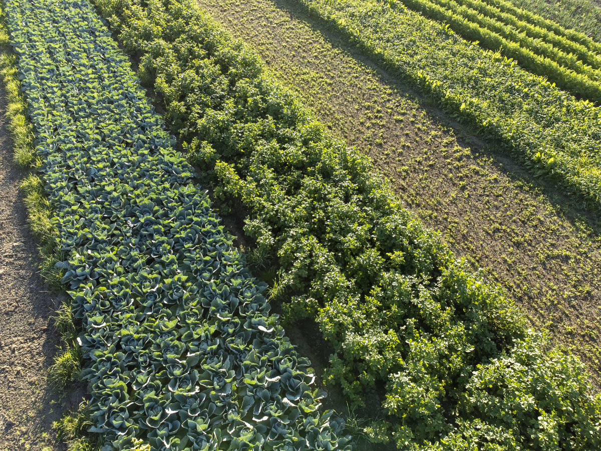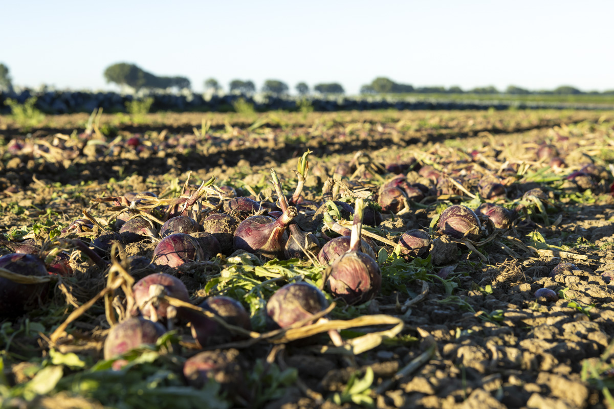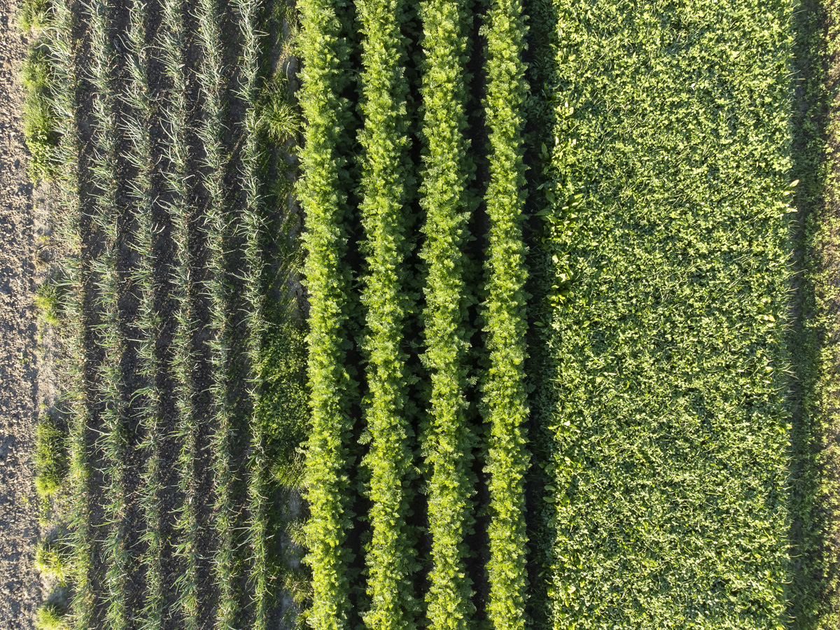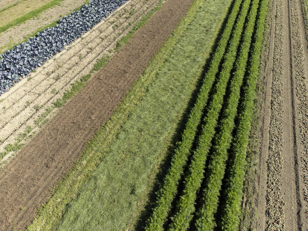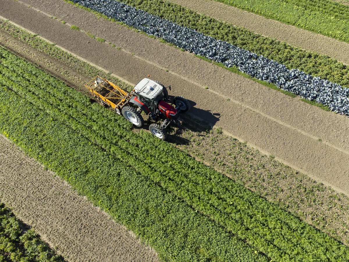 Foto’s van het rooien van de uien en diverse strokenteelten op de akkers van biologisch akkerbouwbedrijf BI-JOVIRA