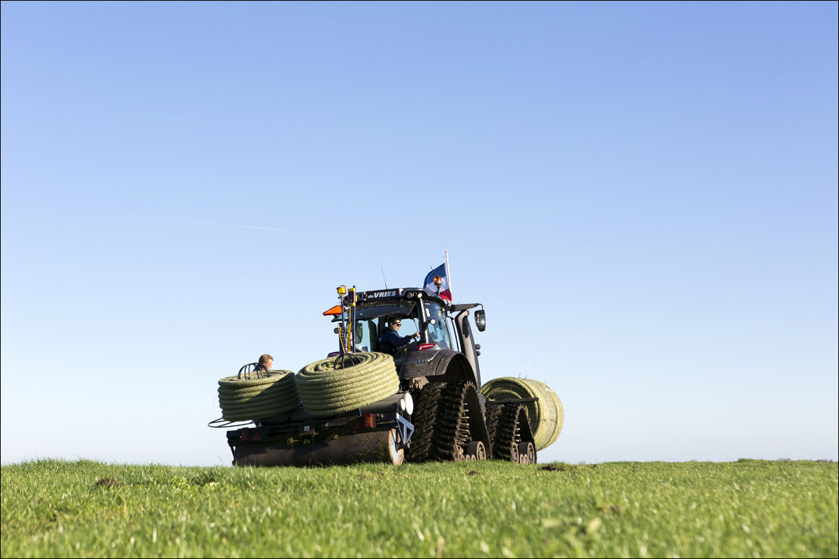 Voor de aanleg van ruim 550 kilometer onderwaterdrainage heeft De Vries Stolwijk B.V. hun Valtra-tractor om laten bouwen op tracks (rupsbanden).