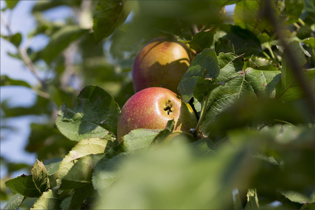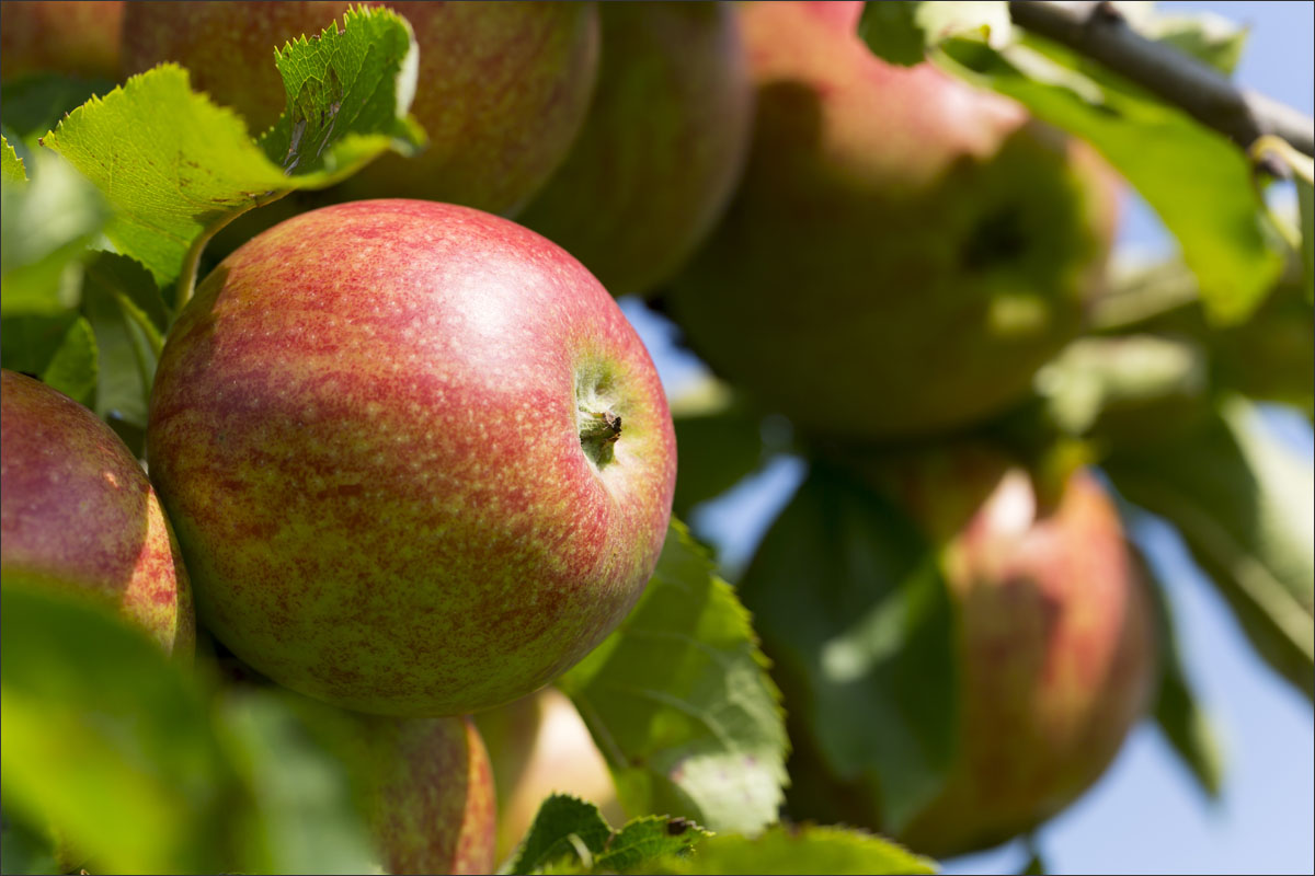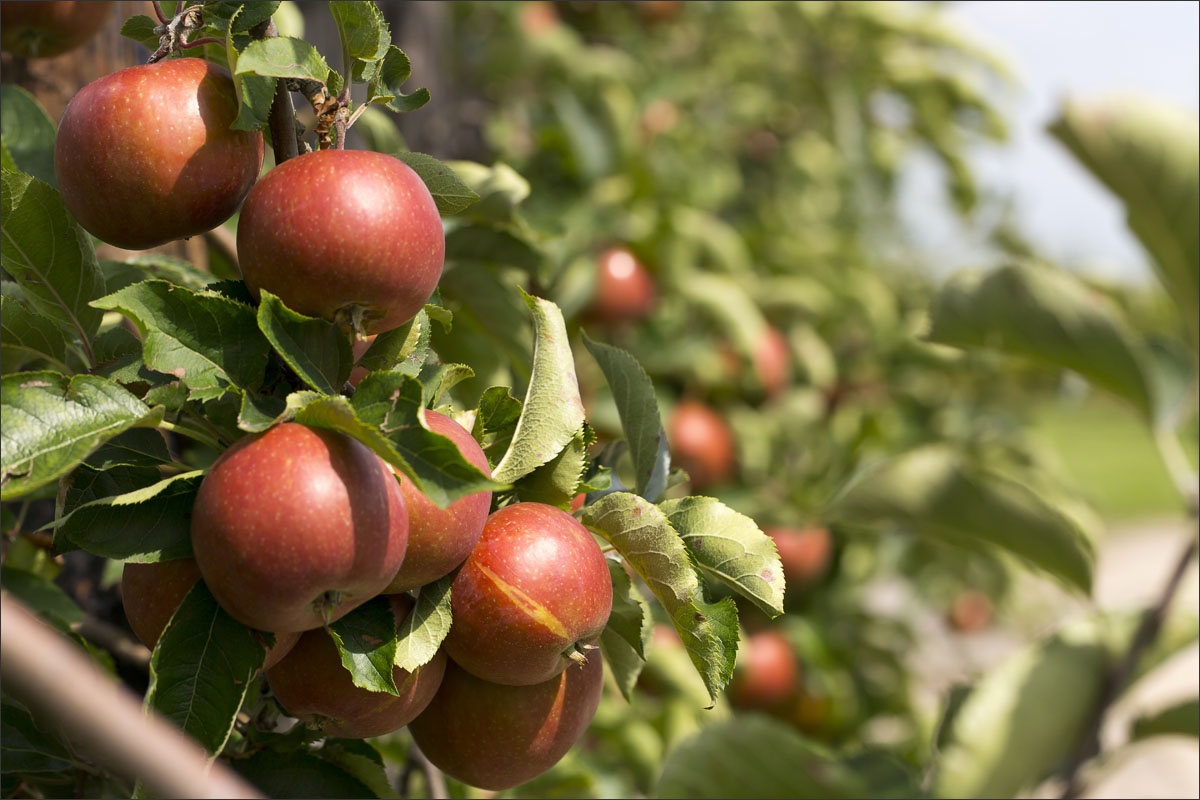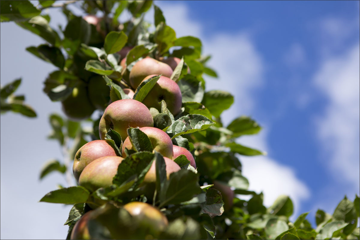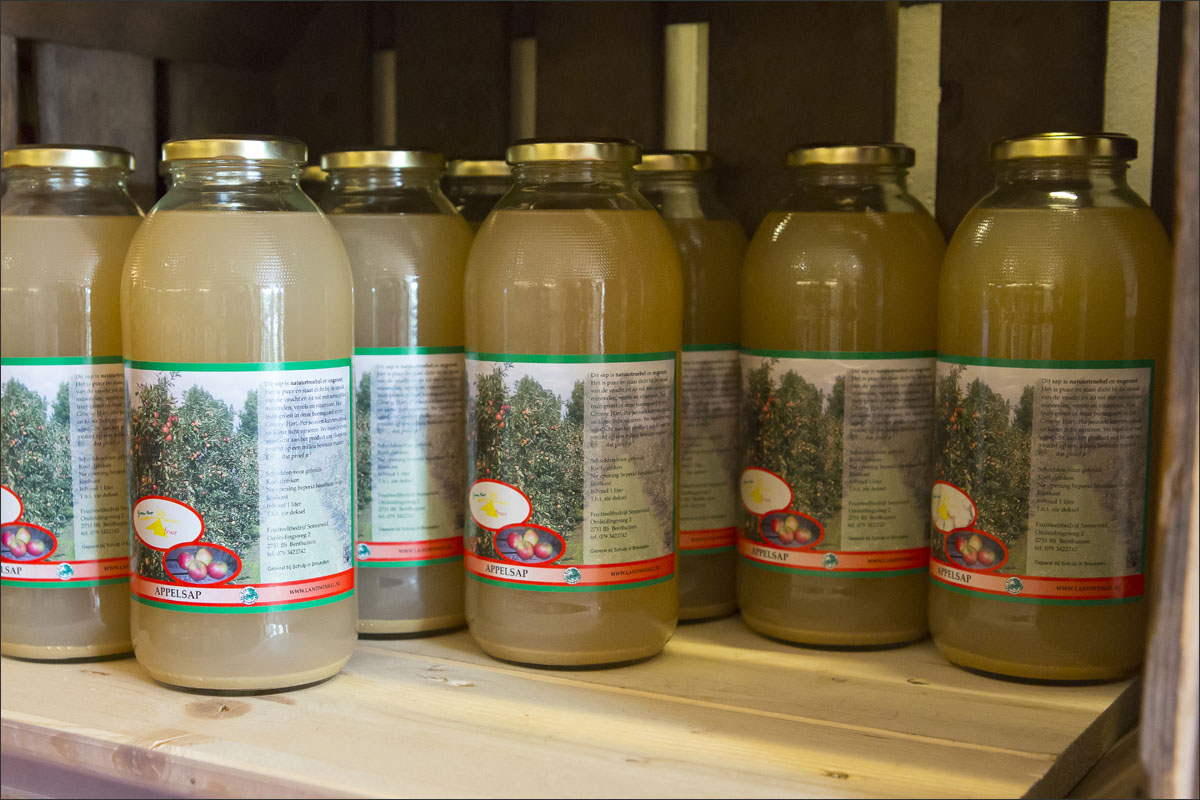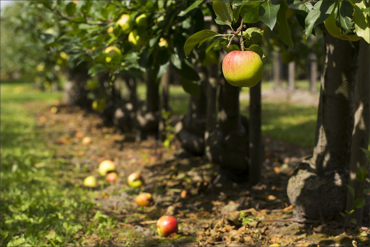 Foto’s van de appels en peren die aan de boom hangen, het plukken van de peren, de landwinkel en de herfstkleuren in de boomgaard.