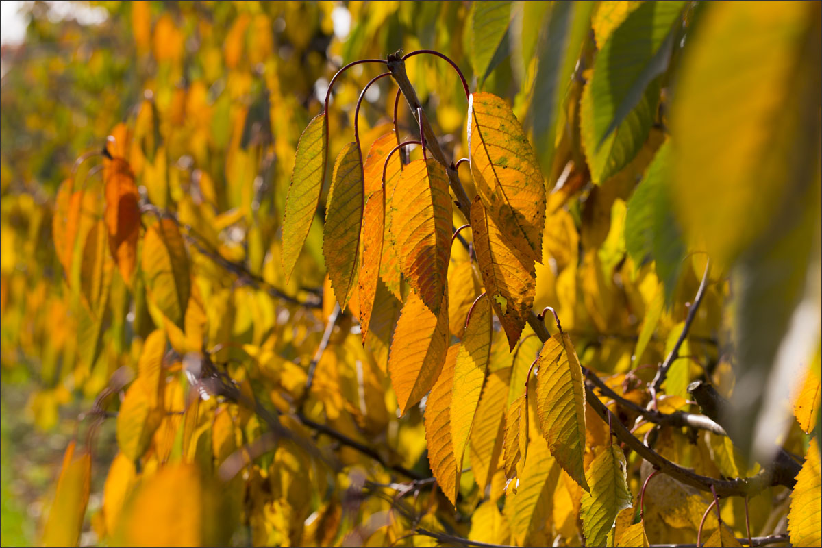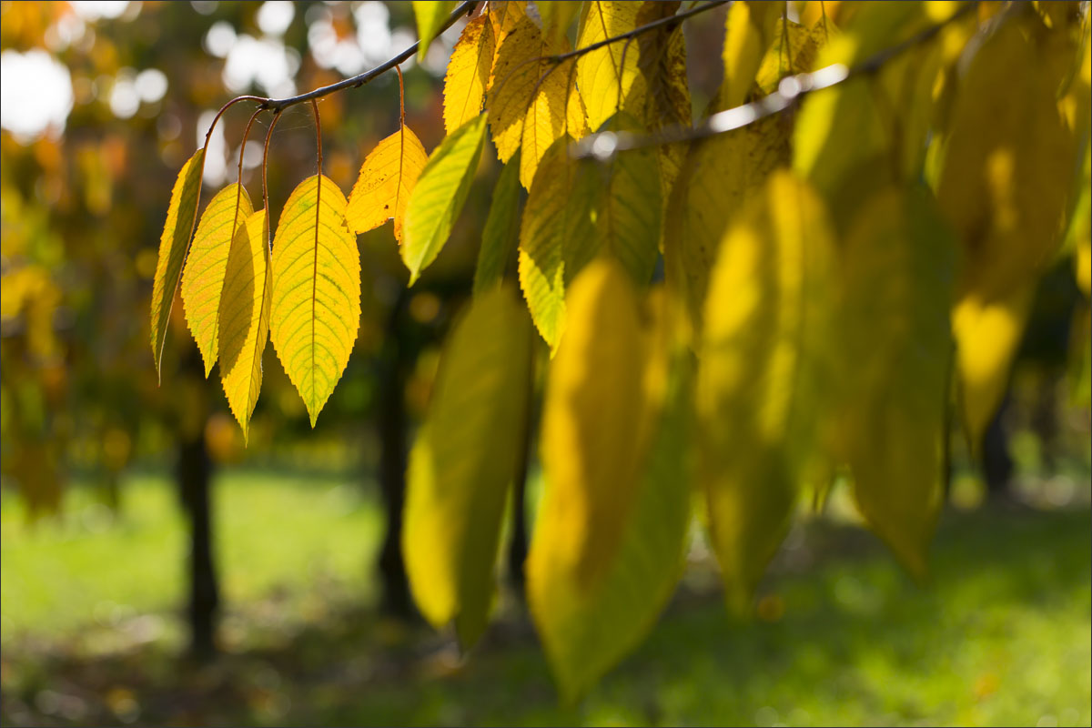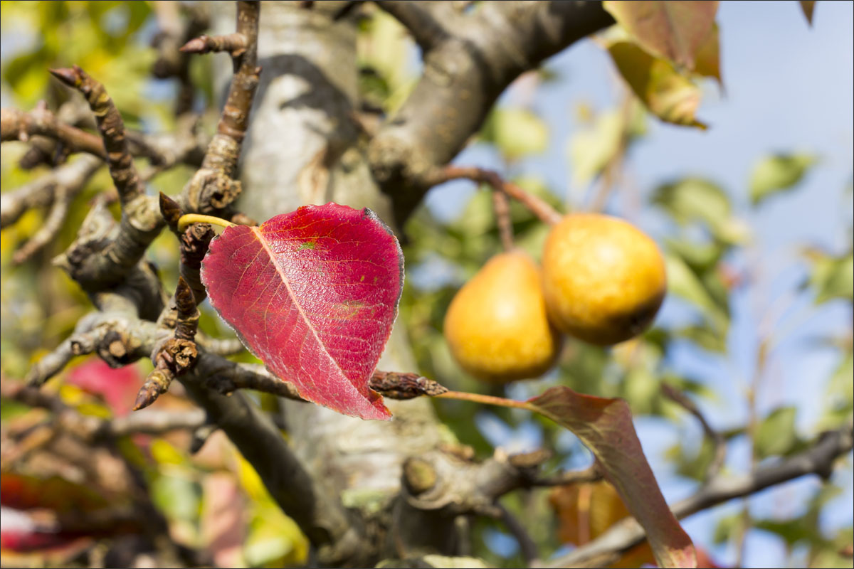 Foto’s van de herfstkleuren in de boomgaard, de