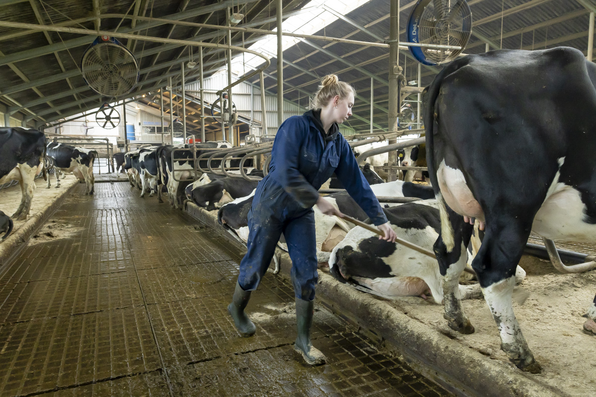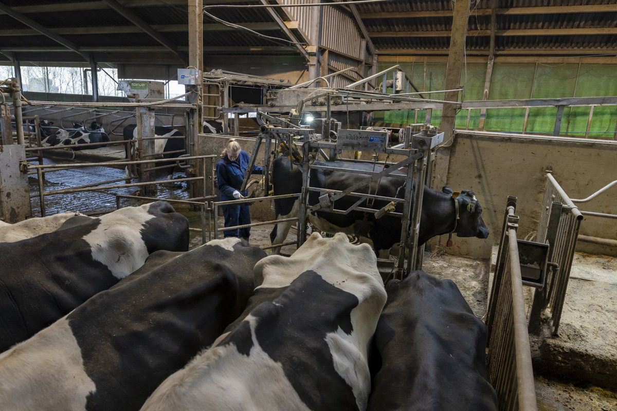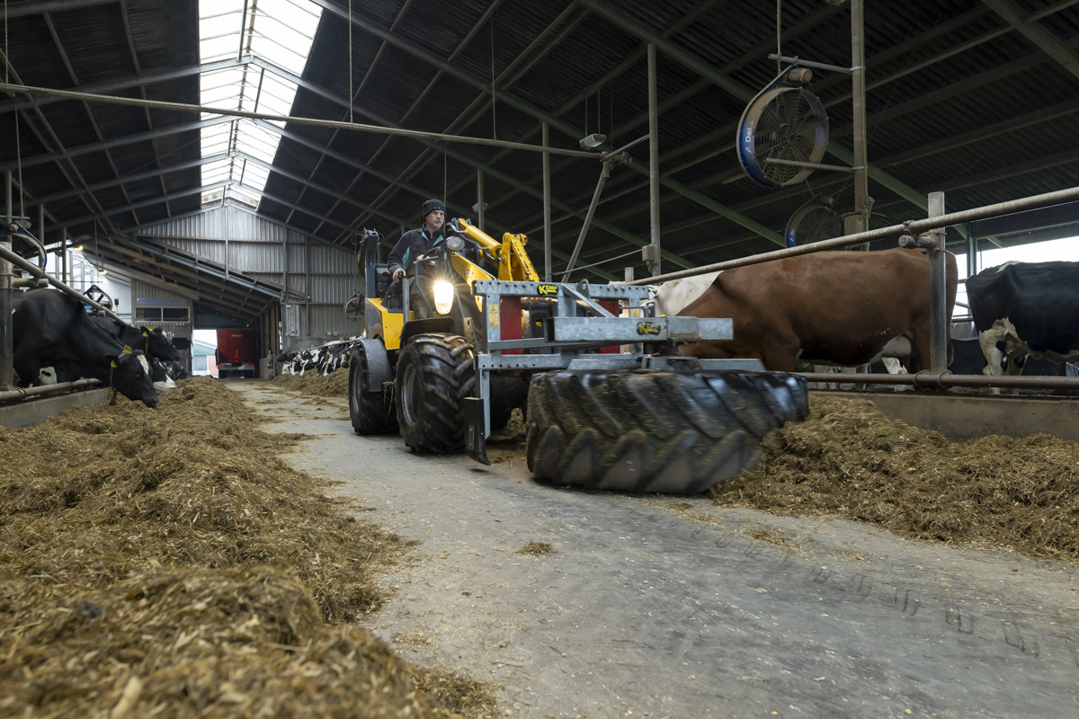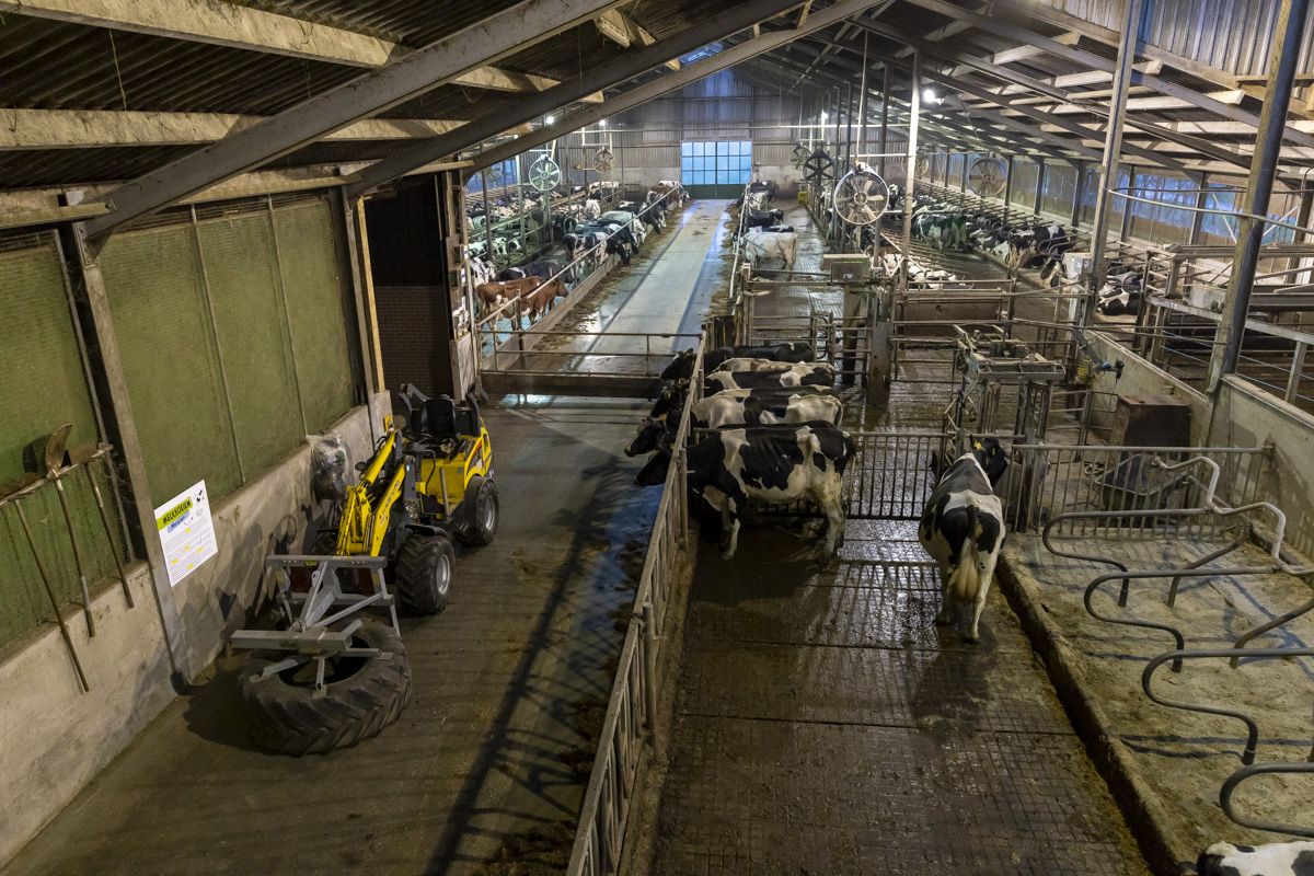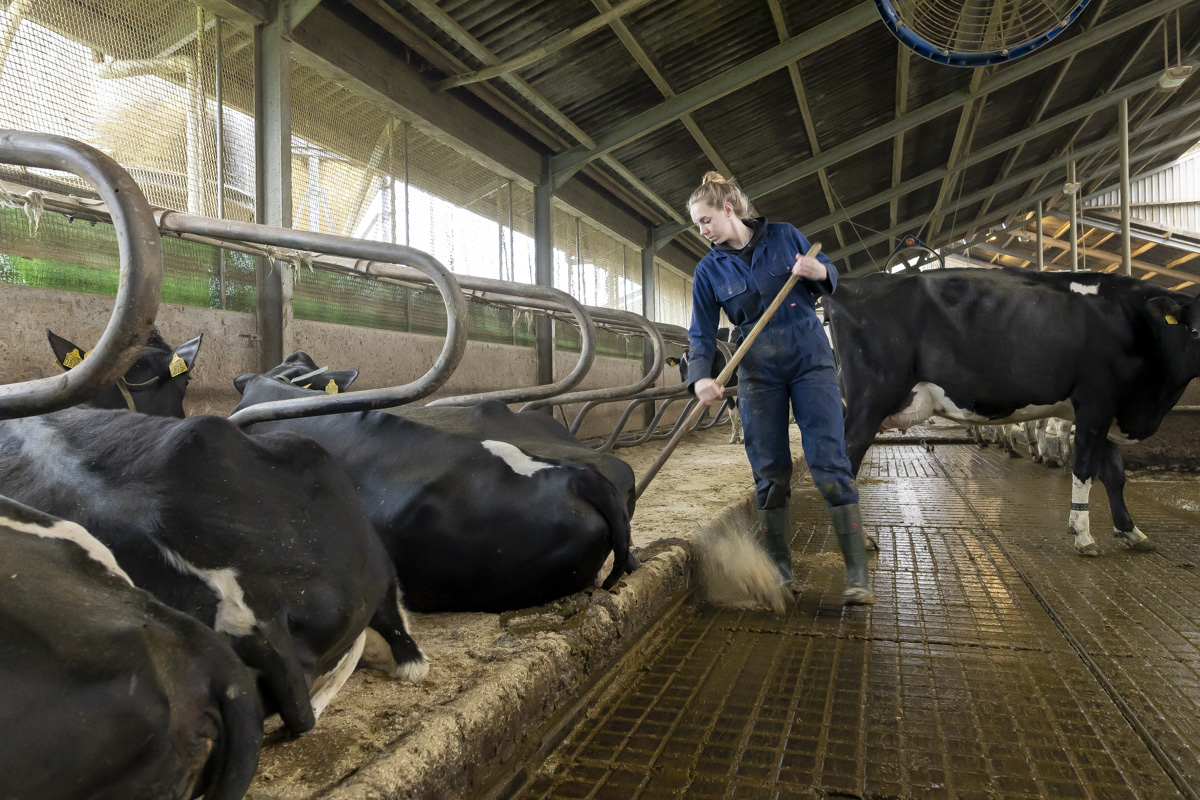 Een kijkje in de stal van de Twee Hoeven met o.a. het verzorgen van de hoeven van de koe (klauwbekappen), het aanschuiven van het ruwvoer en het verschonen van de ligboxen.