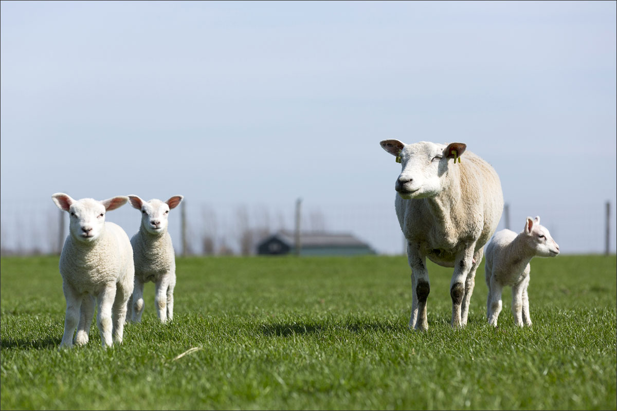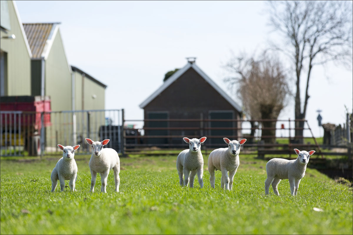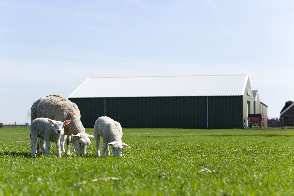 Foto’s van de lammeren buiten in de weide, op boerderij Zonneveld.