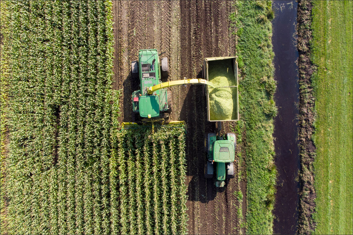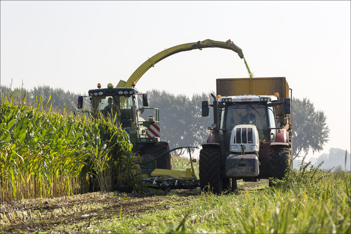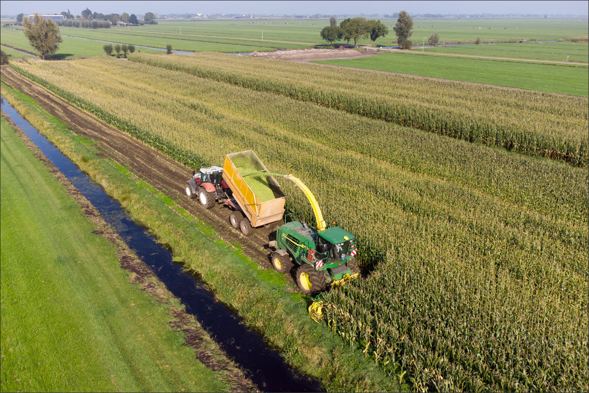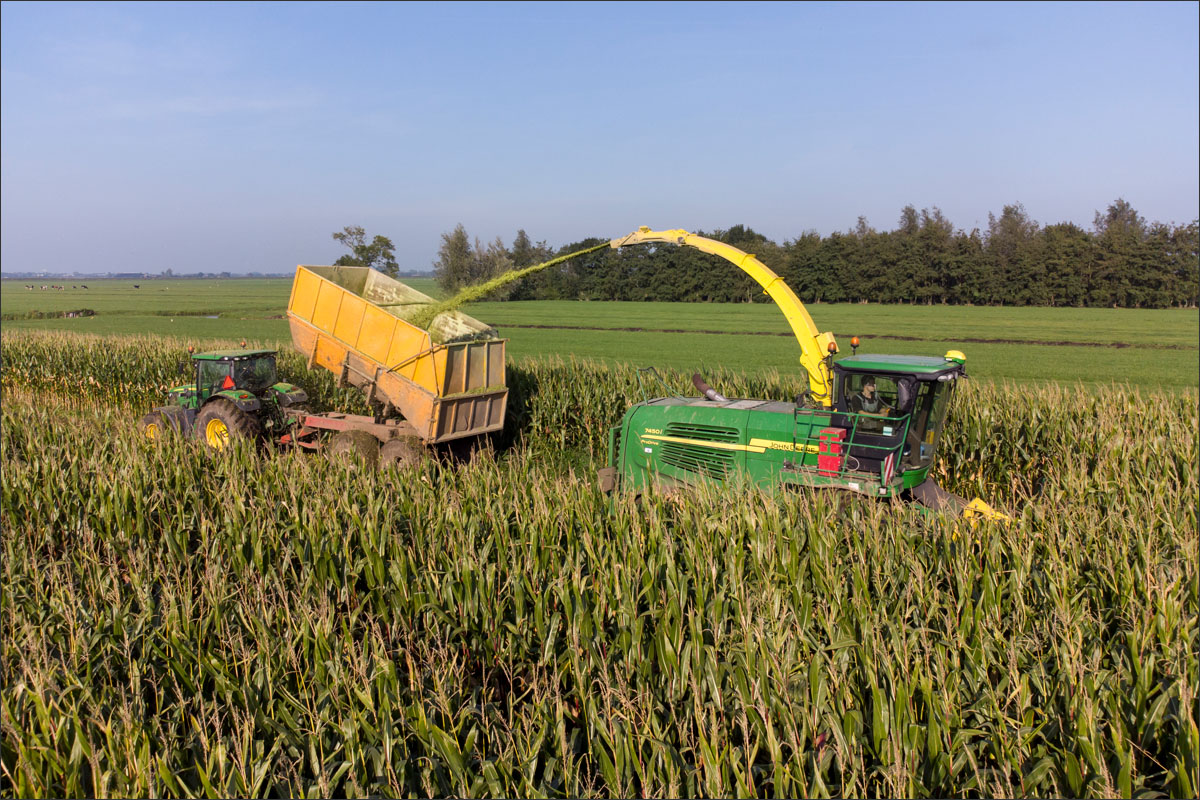 Foto’s van het maïs hakselen en inkuilen op het land van de familie van Rees uit Brandwijk.