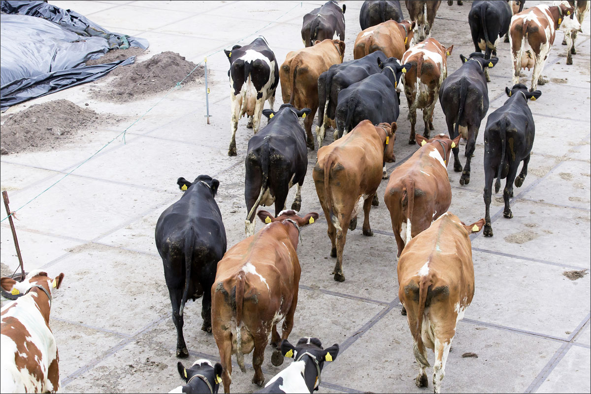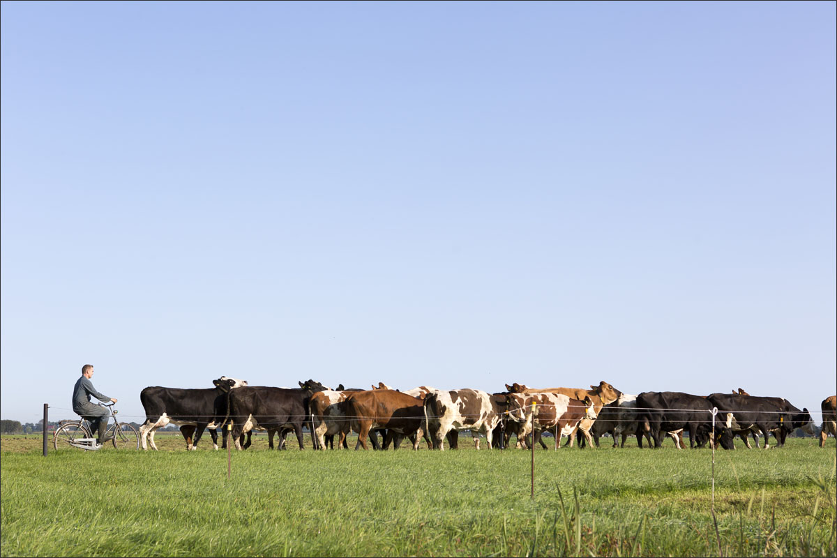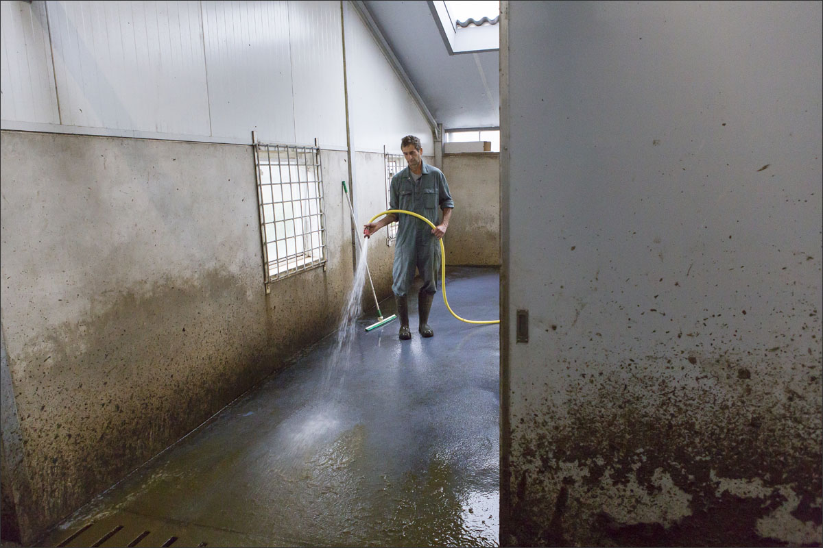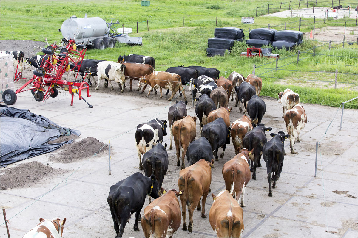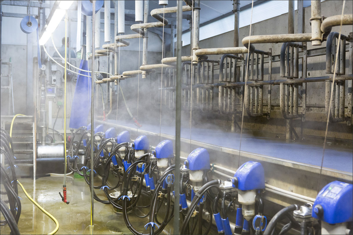 De melkstal wordt schoongemaakt en de koeien mogen na het melken weer de weide in (weidegang).