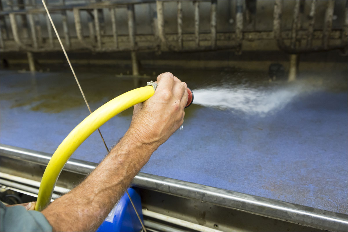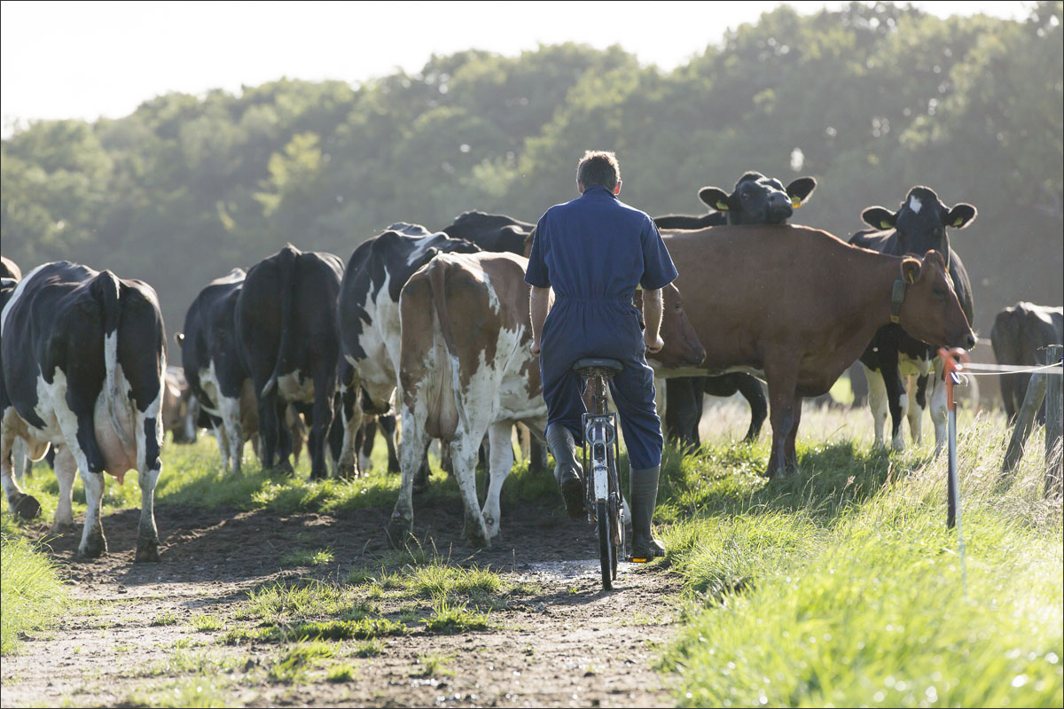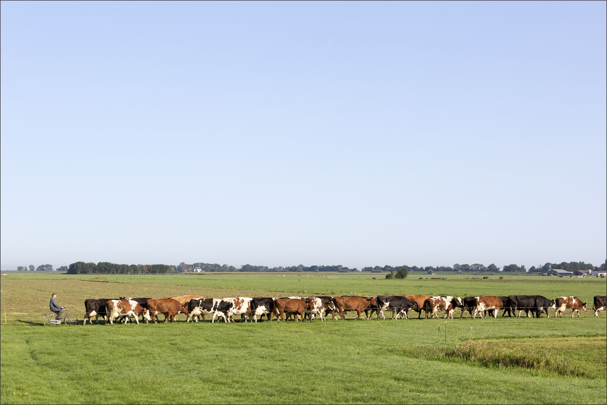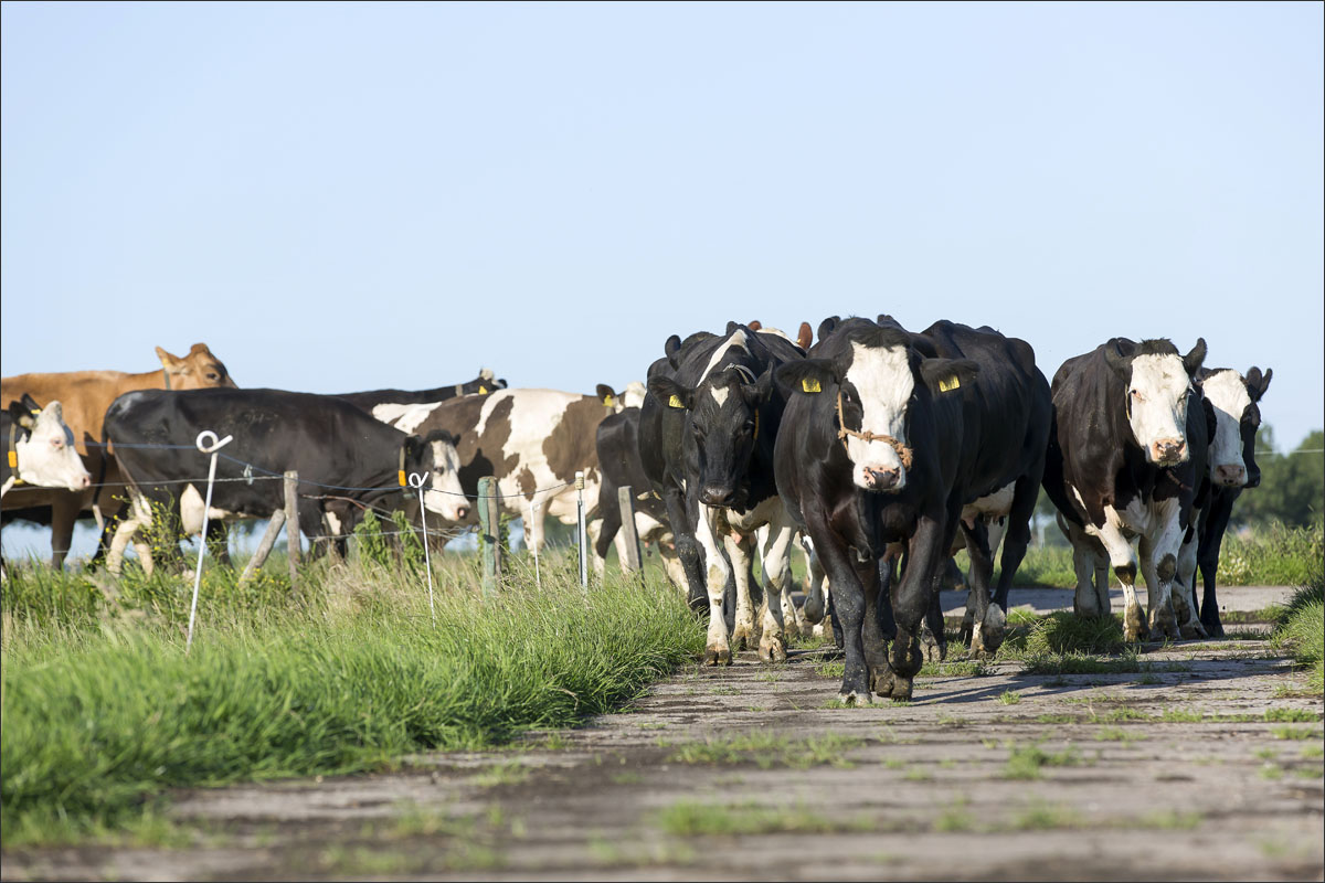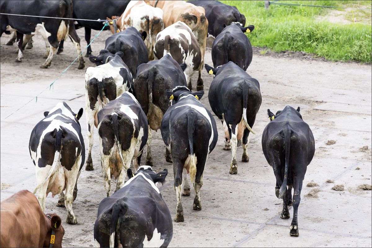 De melkstal wordt schoongemaakt en de koeien mogen na het melken weer de weide in (weidegang).