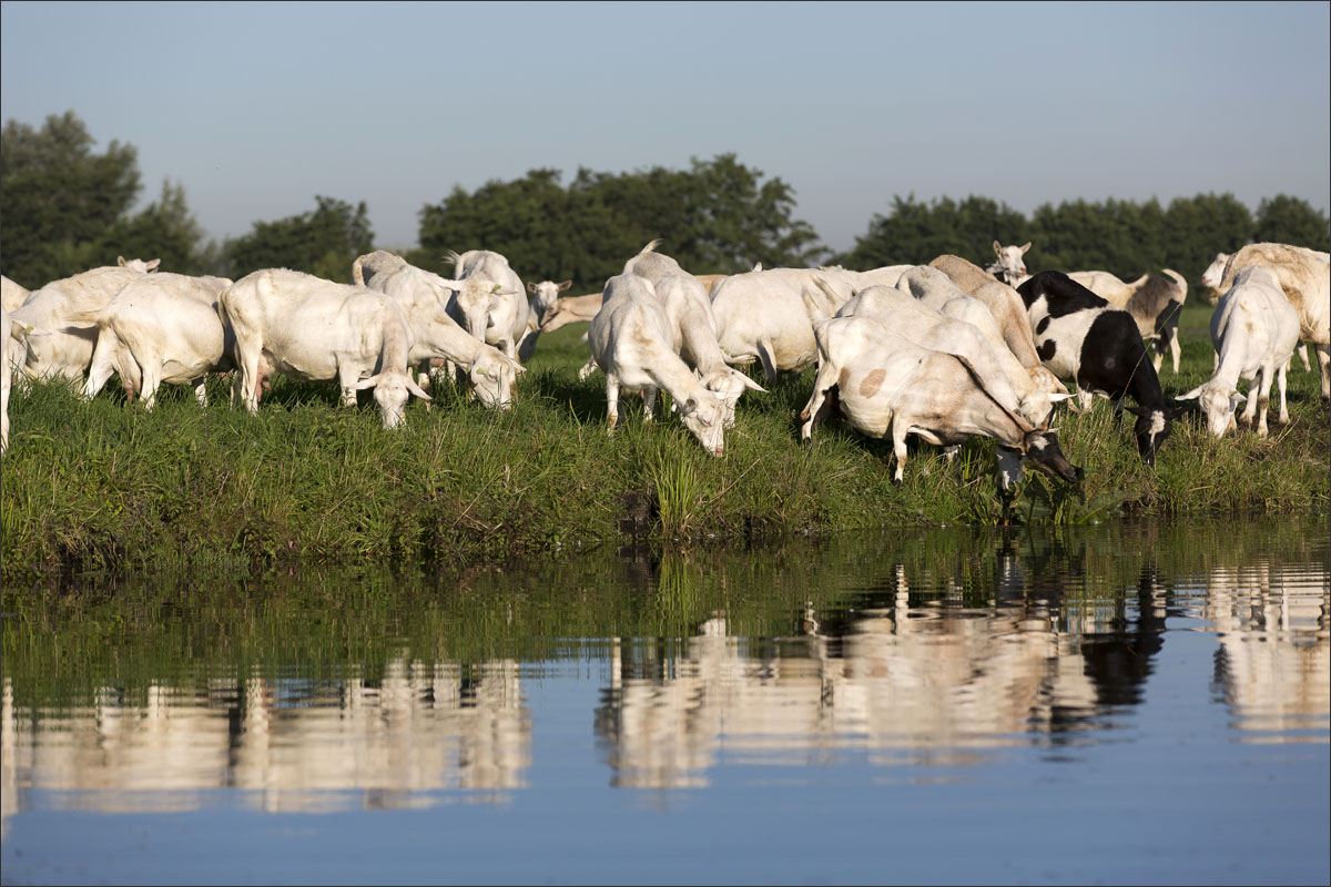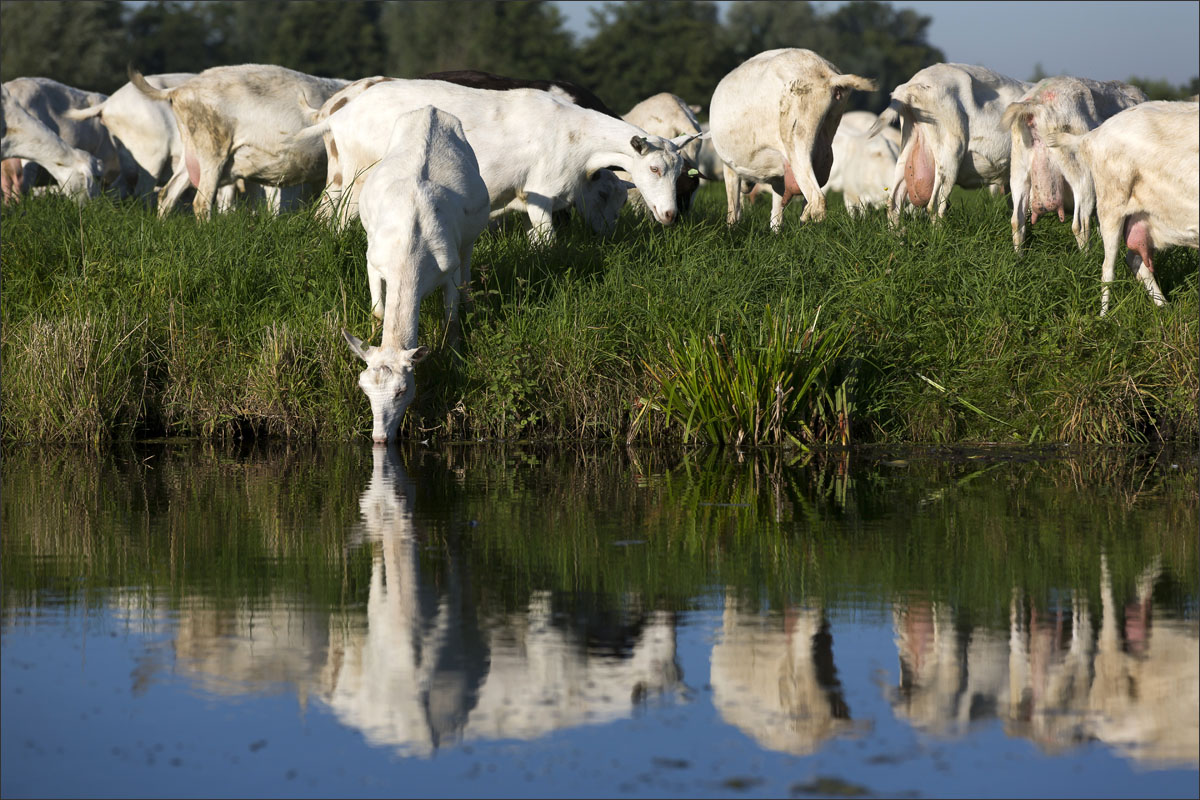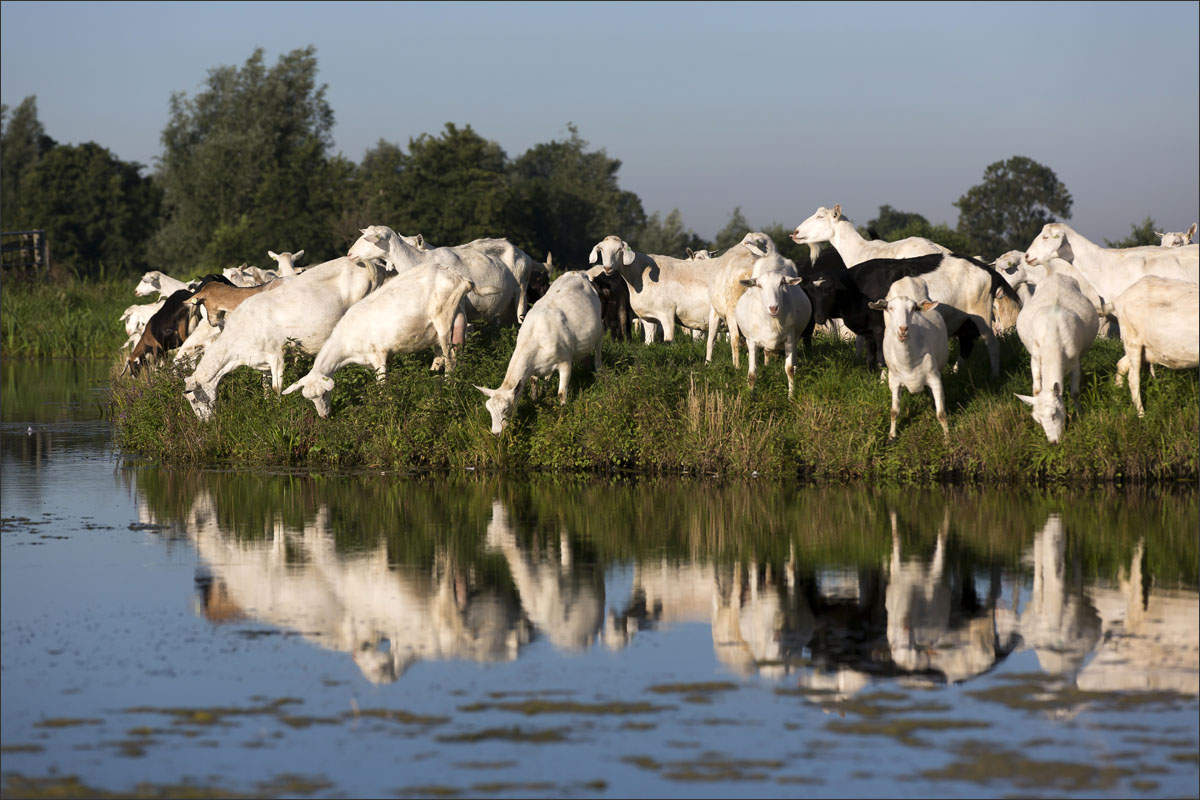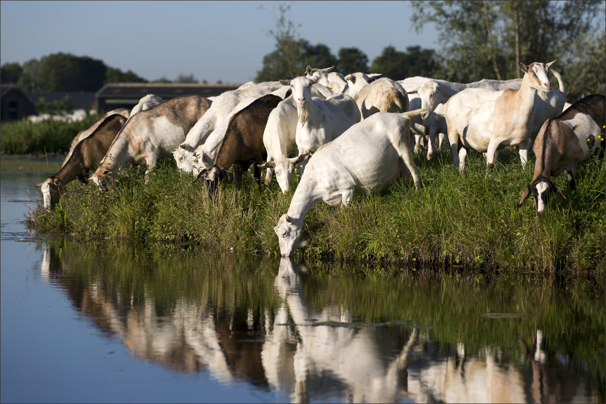 Na het melken gaan de geiten weer de weide in (weidegang).