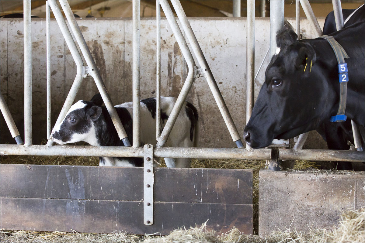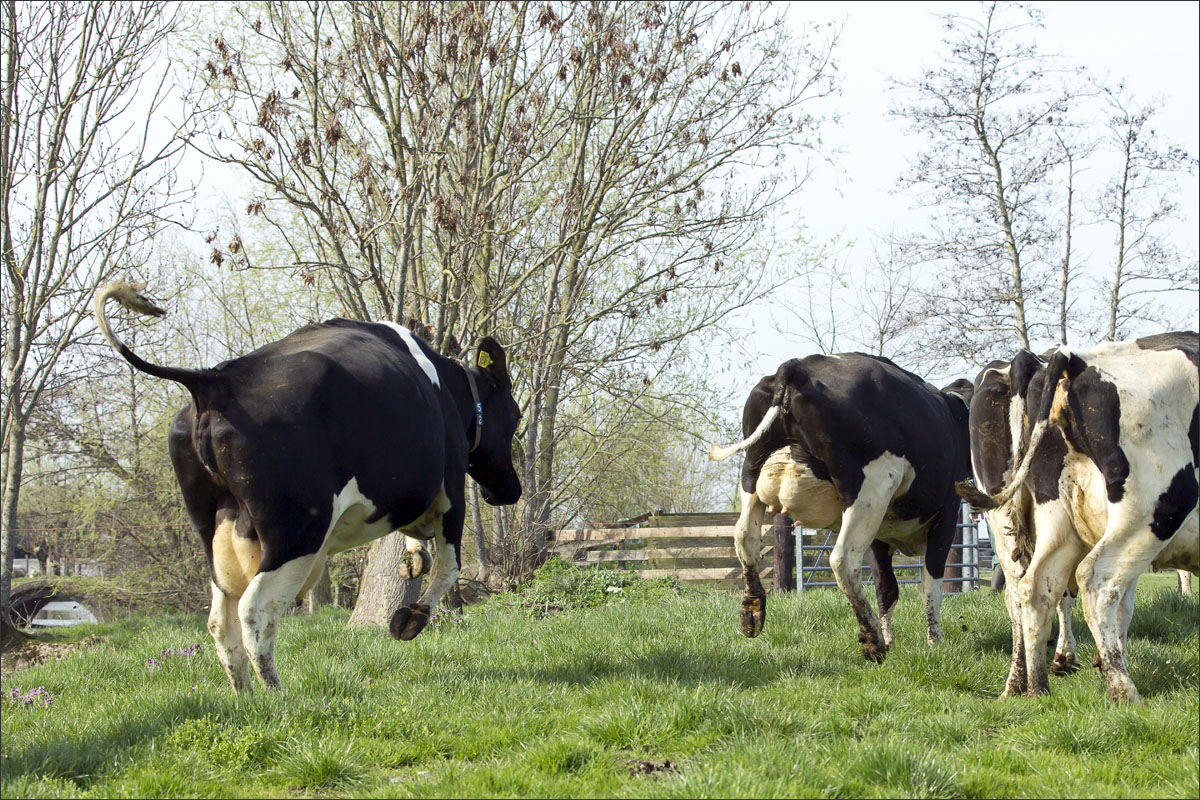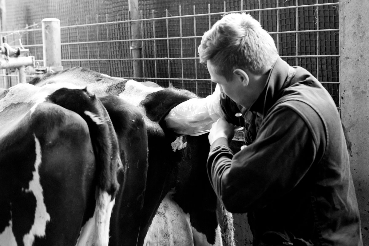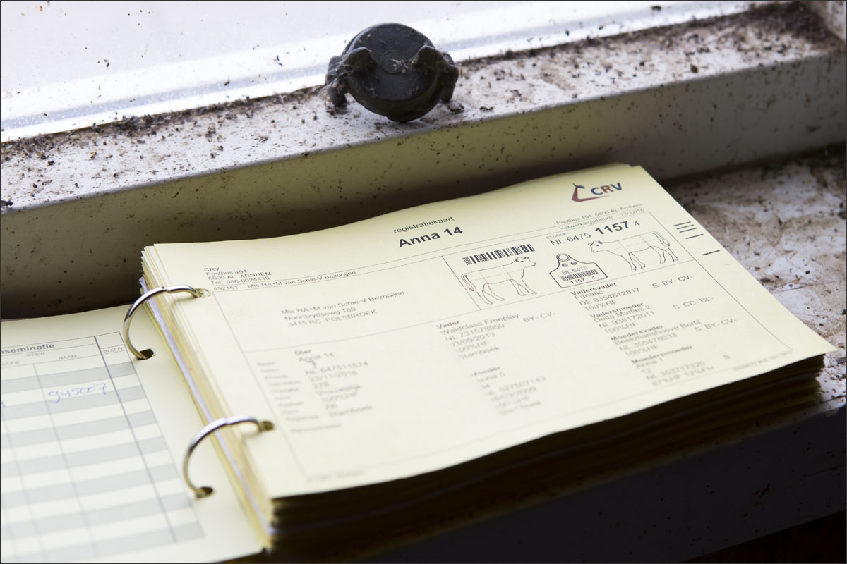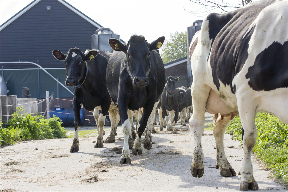 Foto’s van o.a. de koeien en kalveren in de stal, het insemineren van de melkkoe en de koeiendans (de koeien weer de wei in na een lange winter op stal).