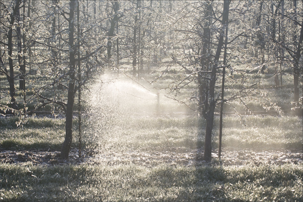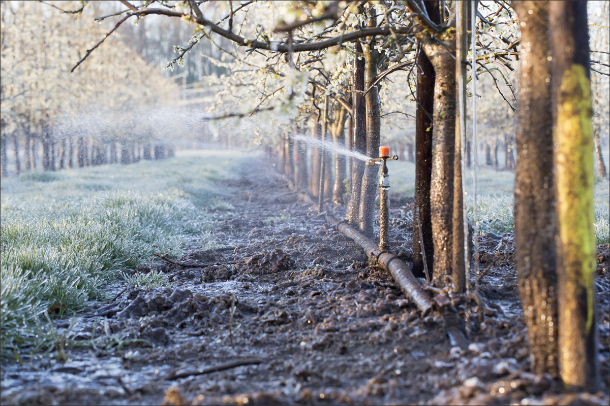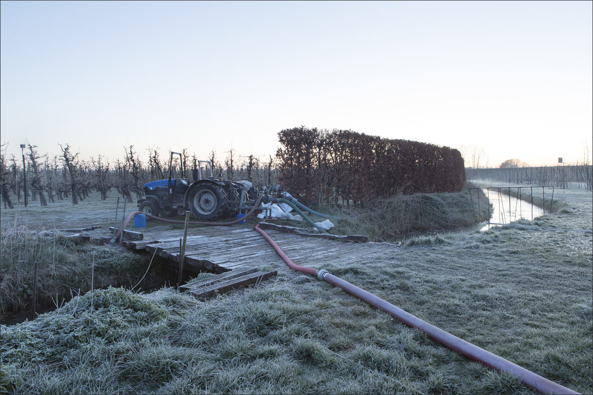 Bij de buren waren ze hun fruitbomen aan het beregenen.