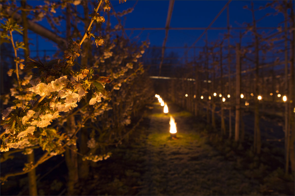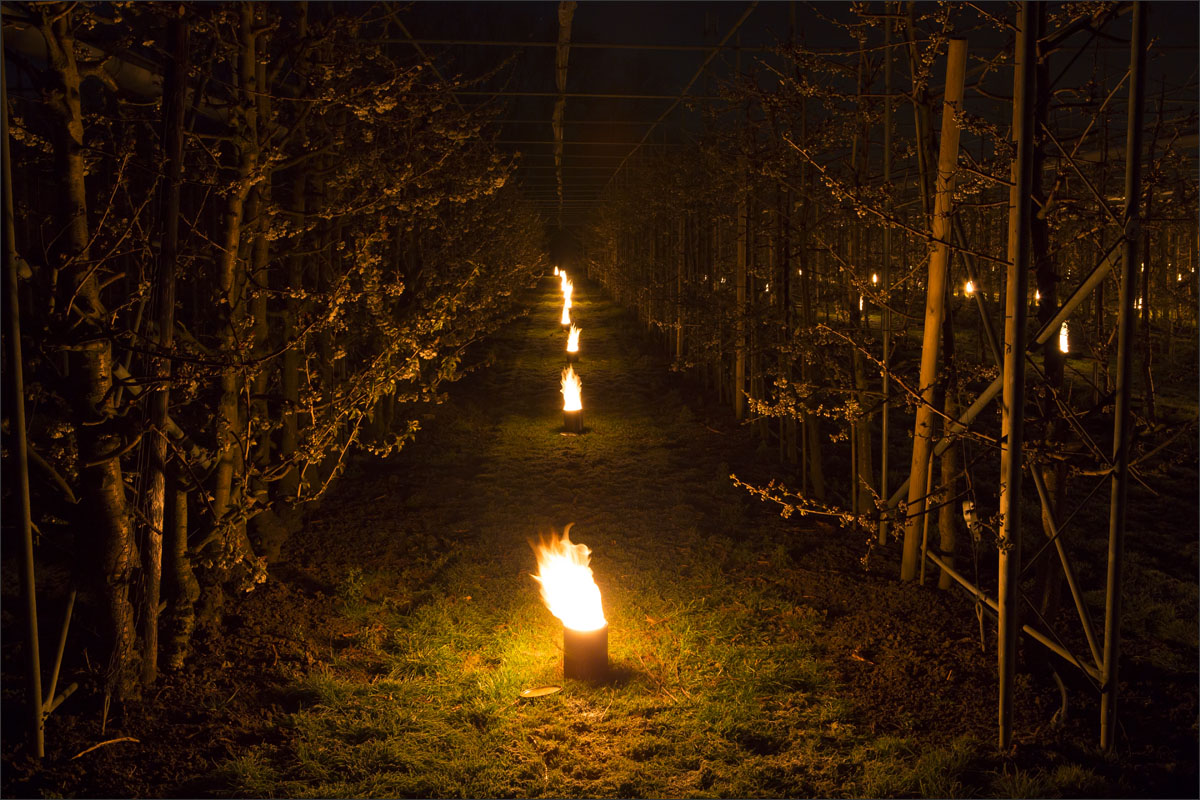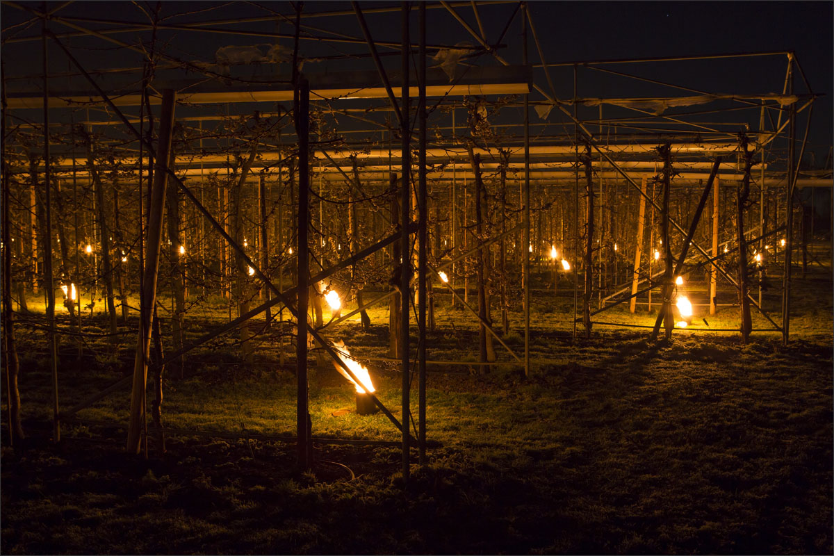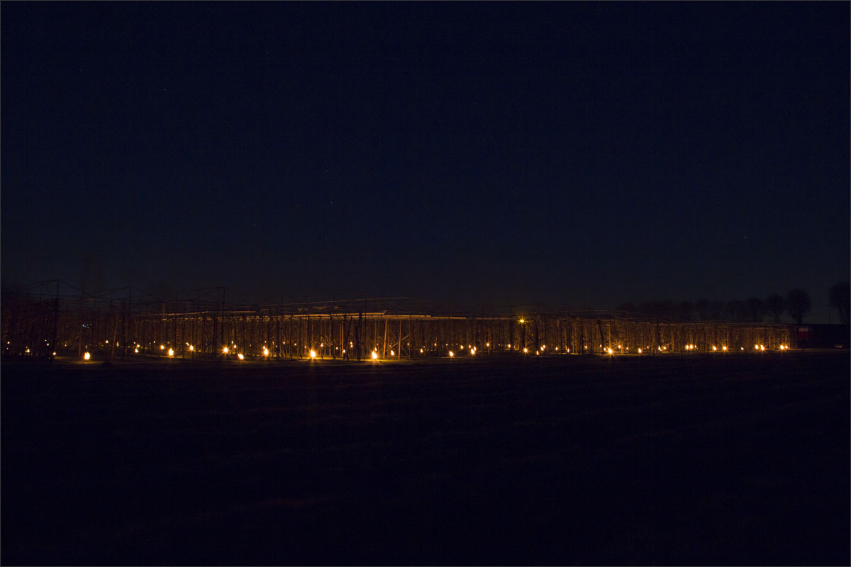 Bij de buren waren ze hun fruitbomen aan het beregenen.