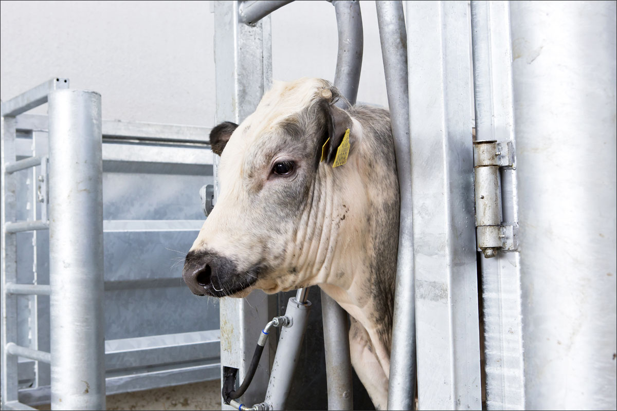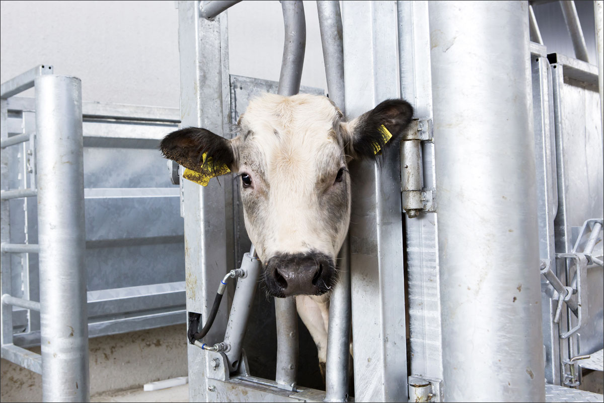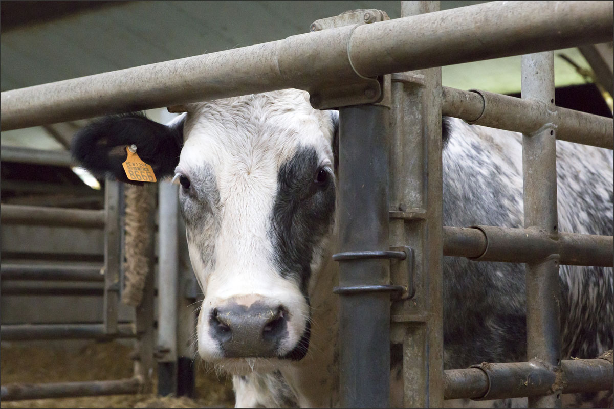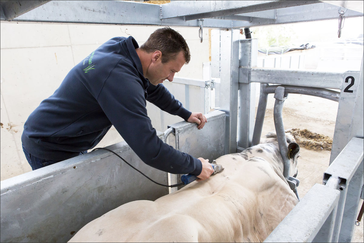 Foto’s van de runderen in de stallen en van het scheren van de koe.