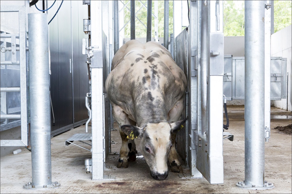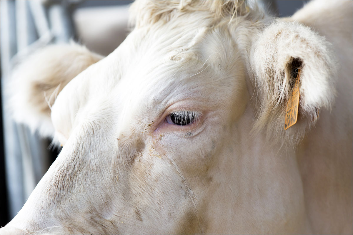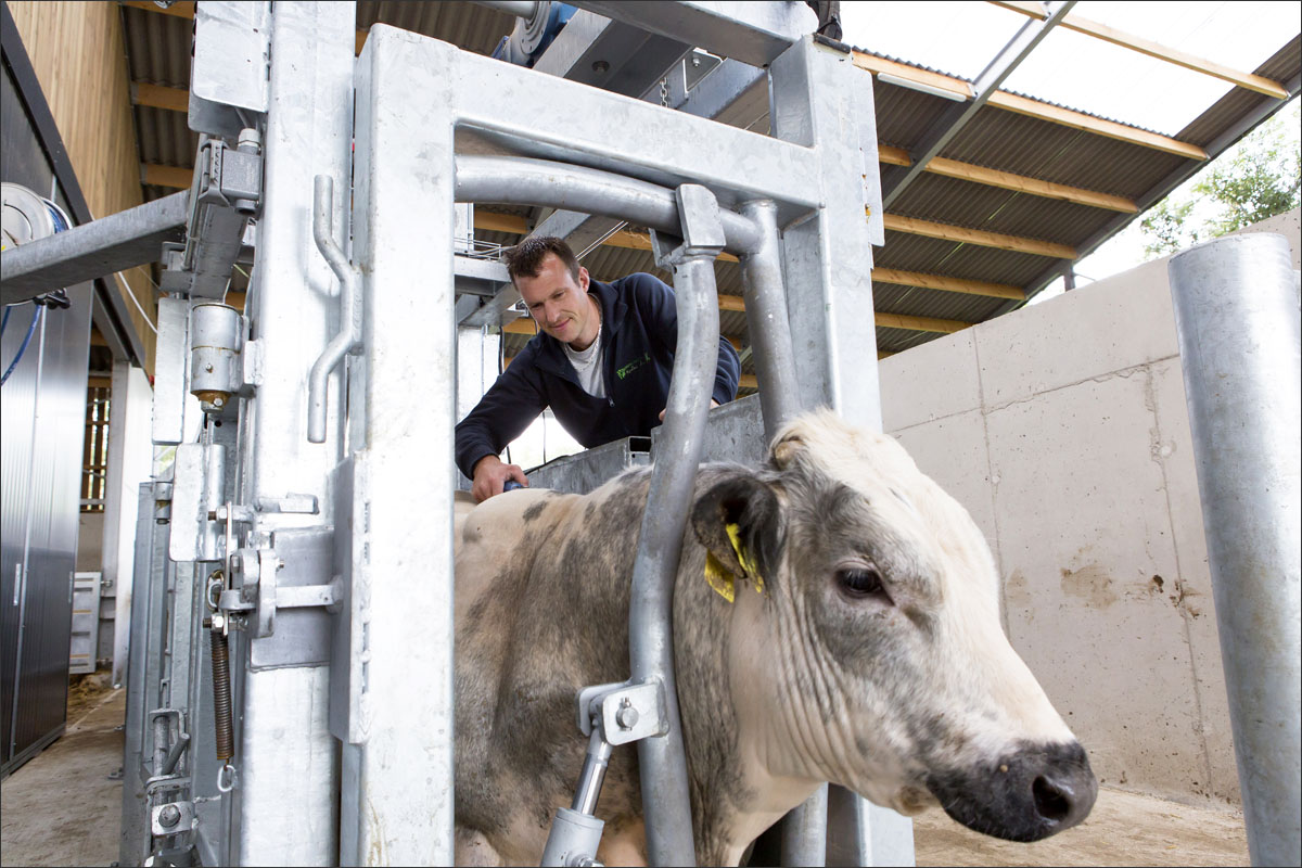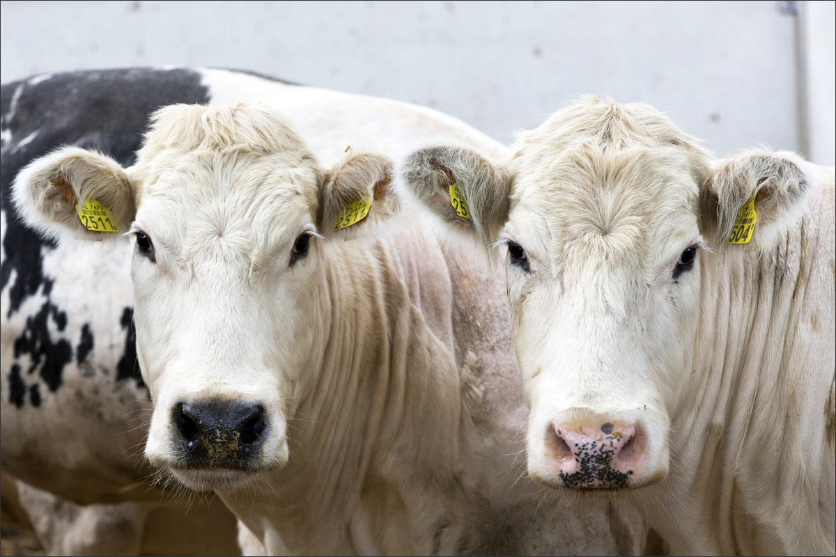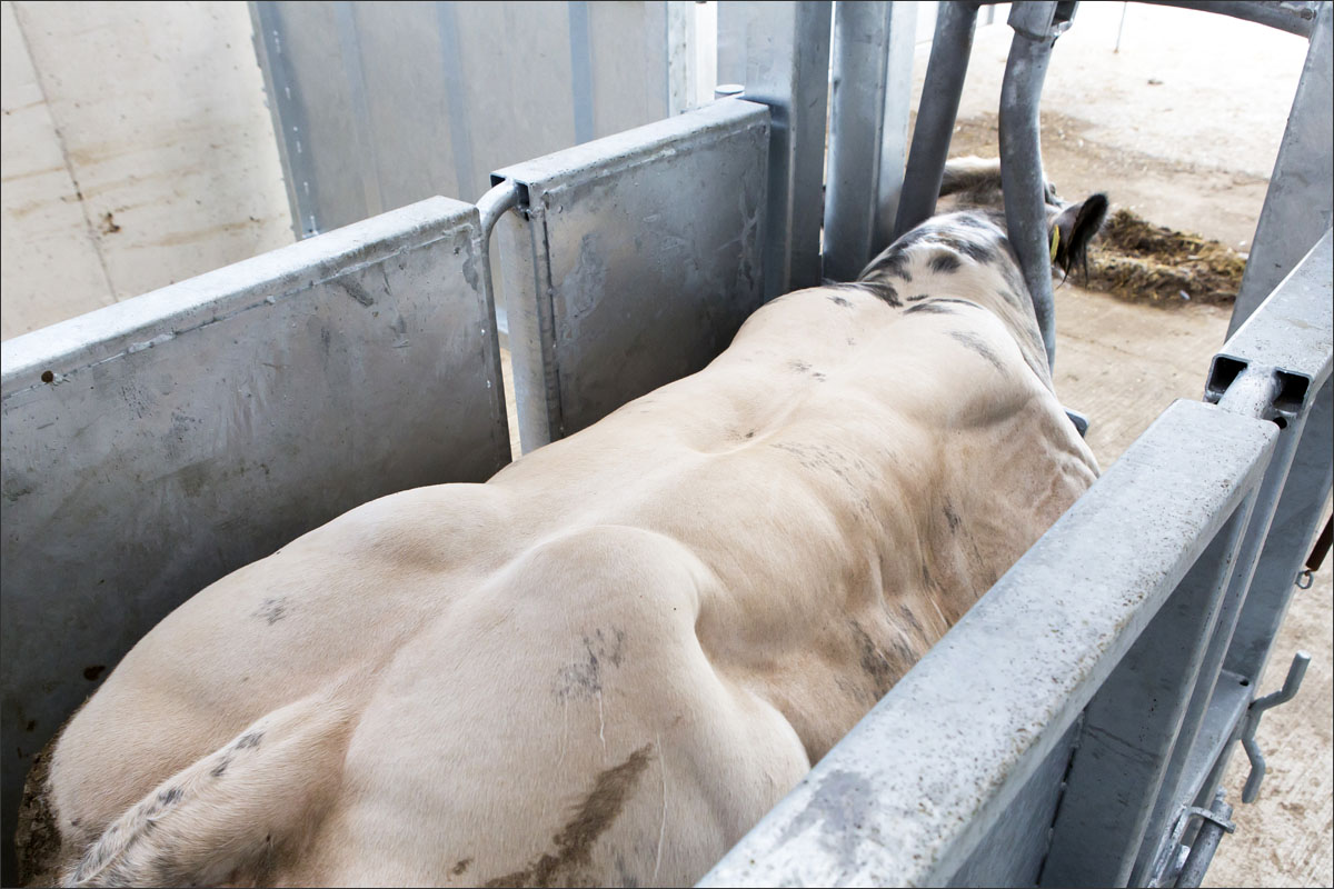 Foto’s van de runderen in de stallen en van het scheren van de koe.