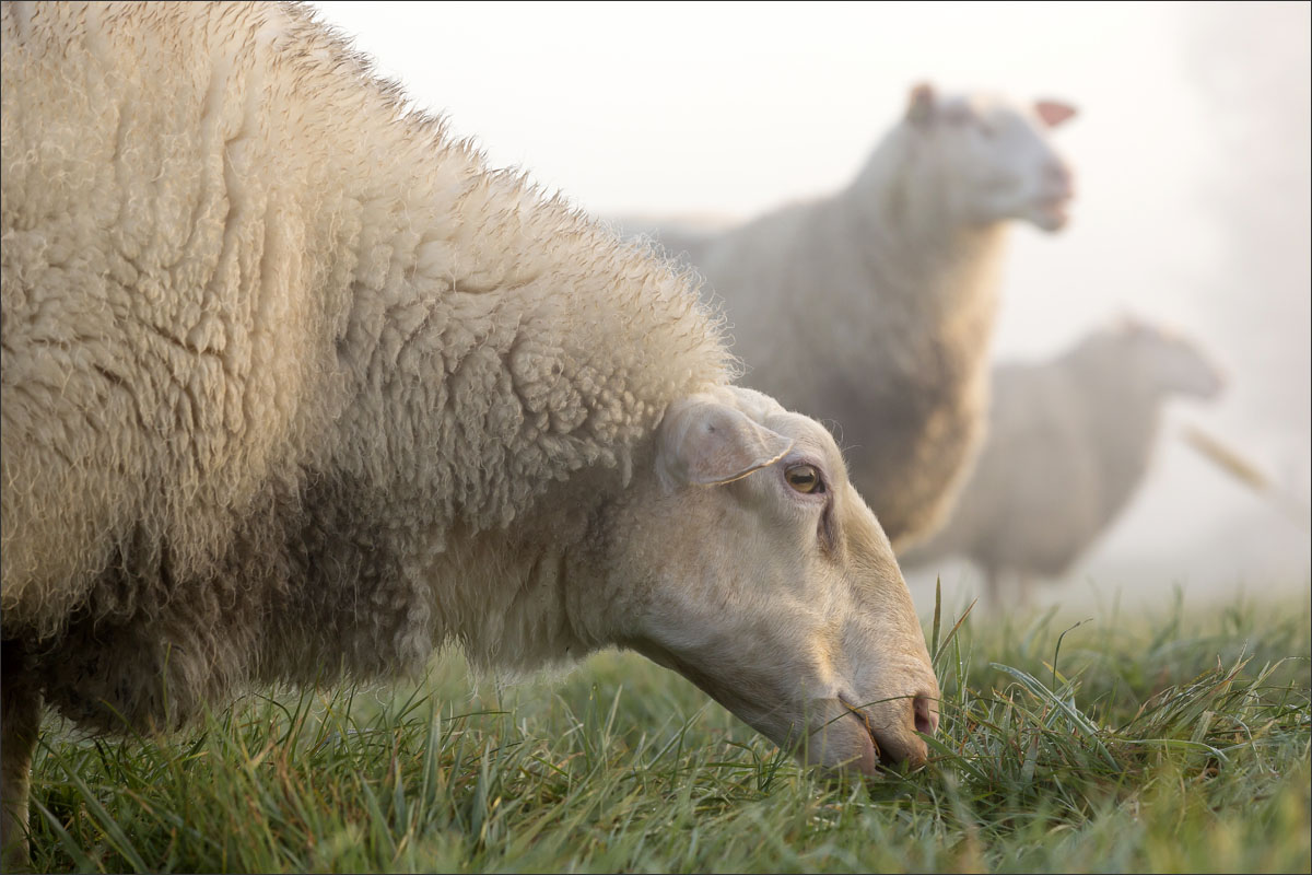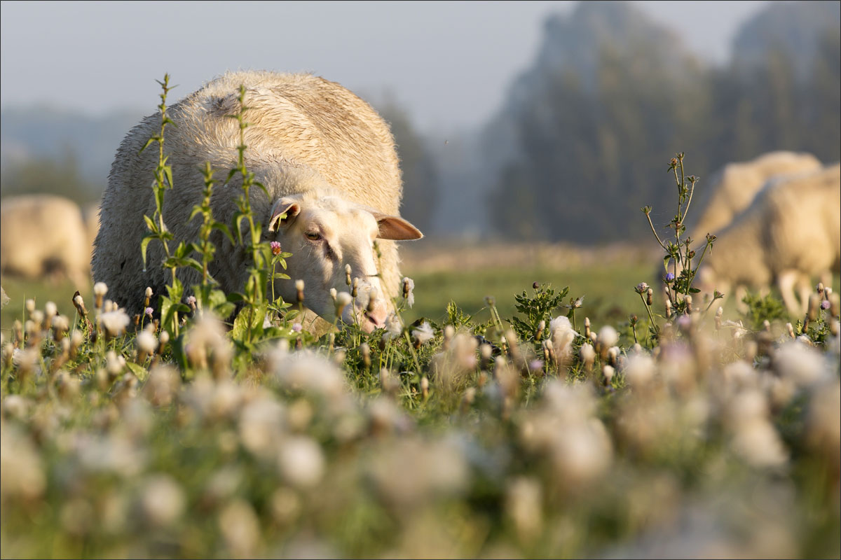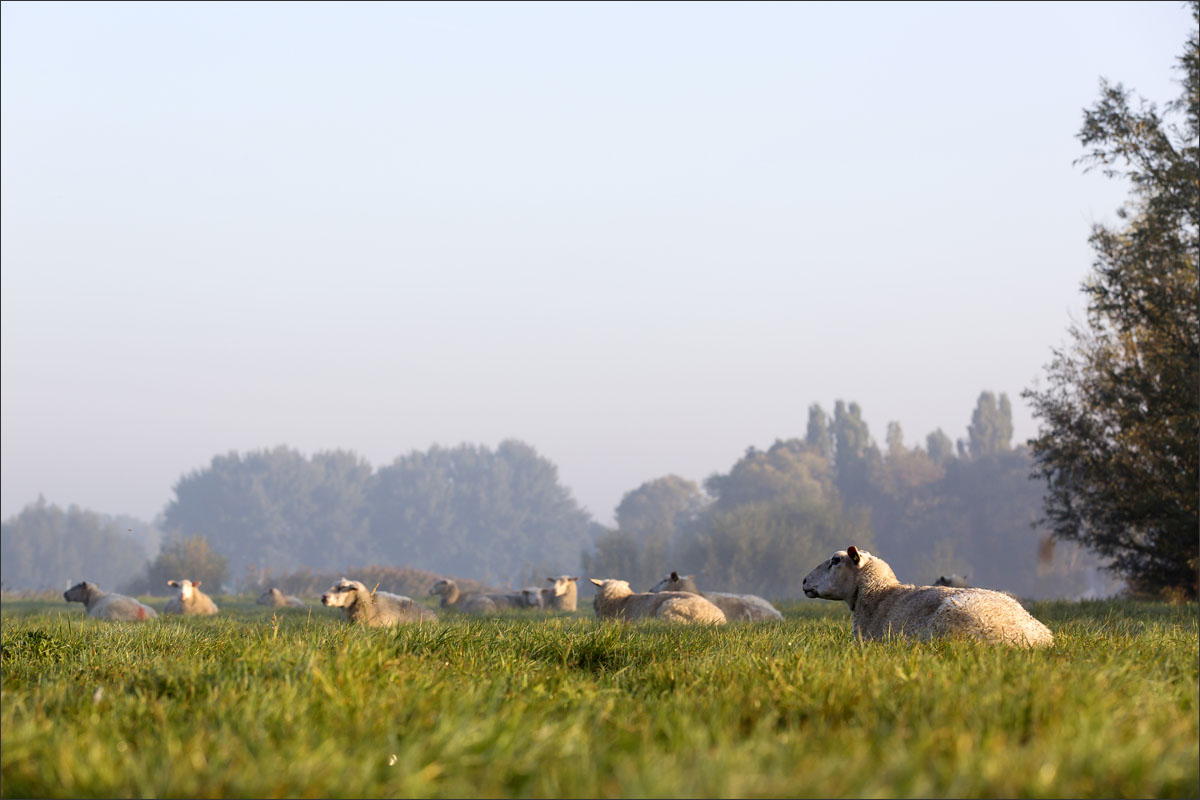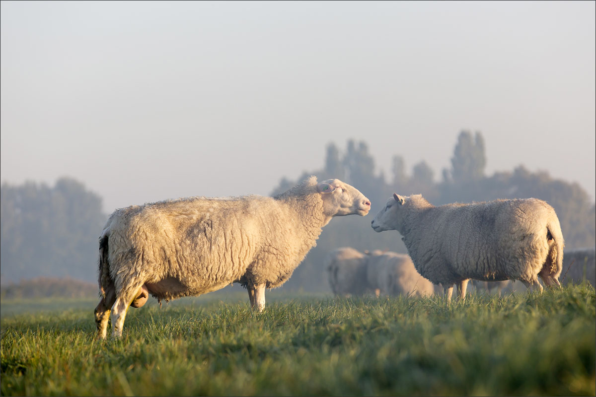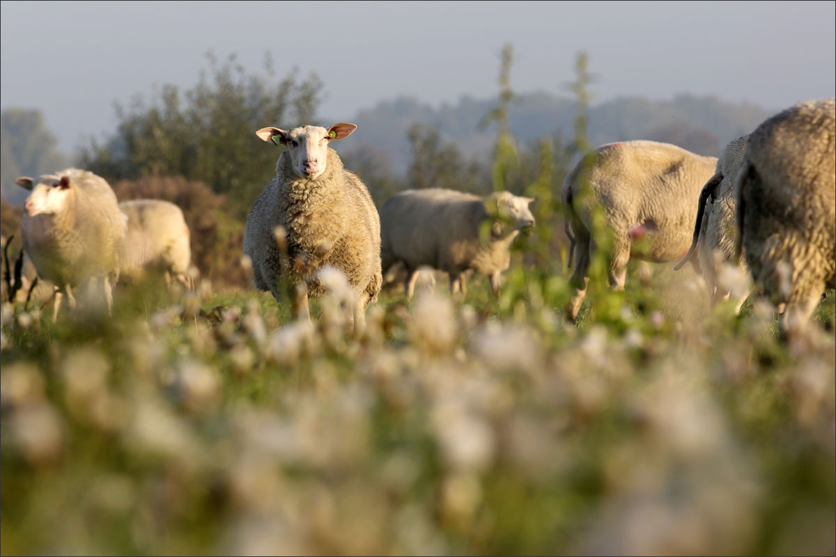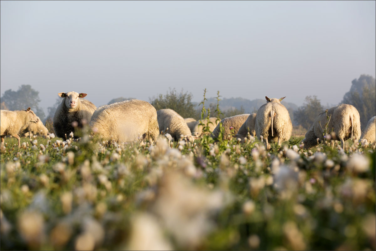 De melkschapen buiten in de weide bij Westhoek Schapenbedrijf.