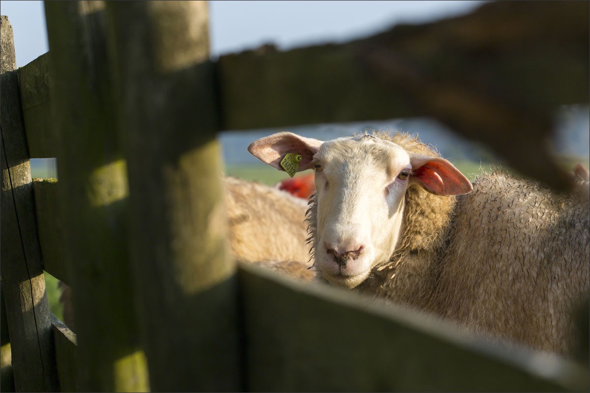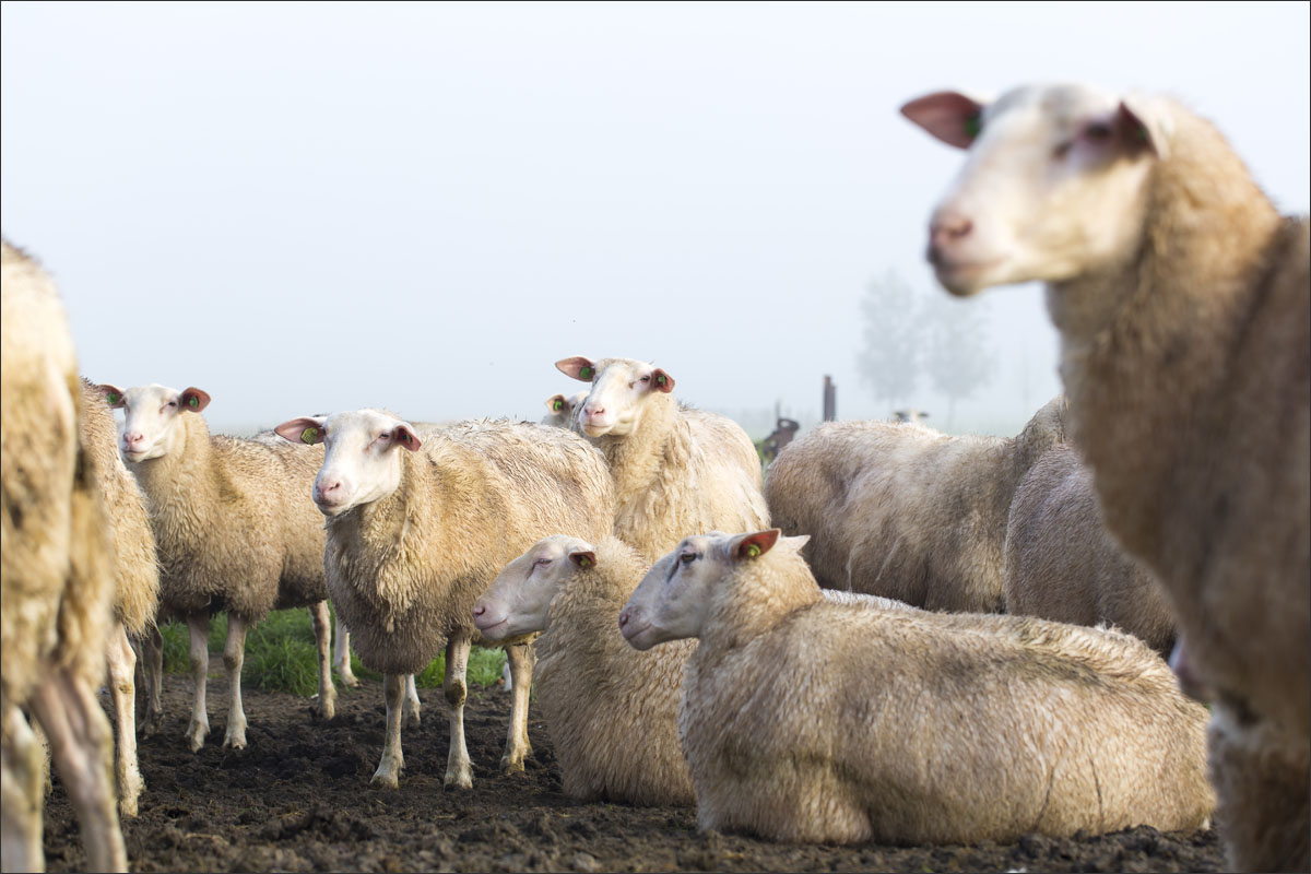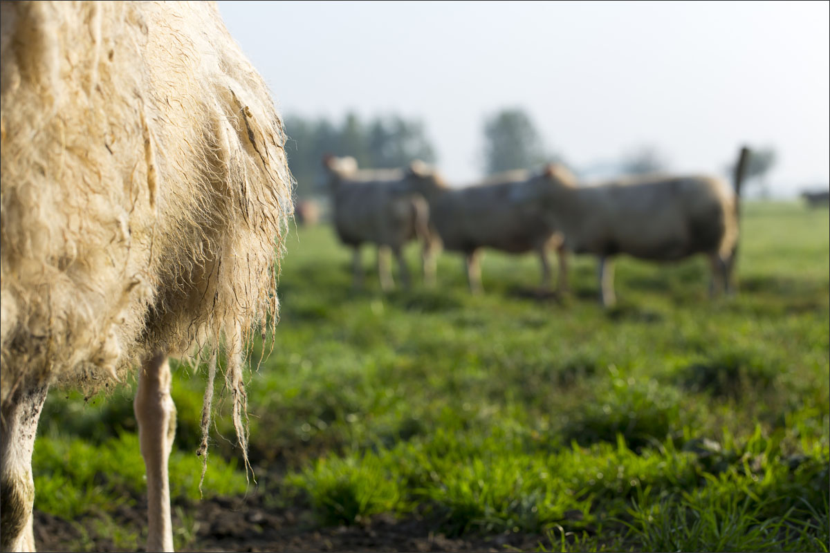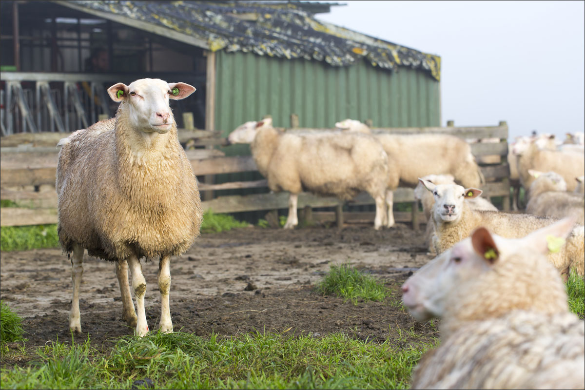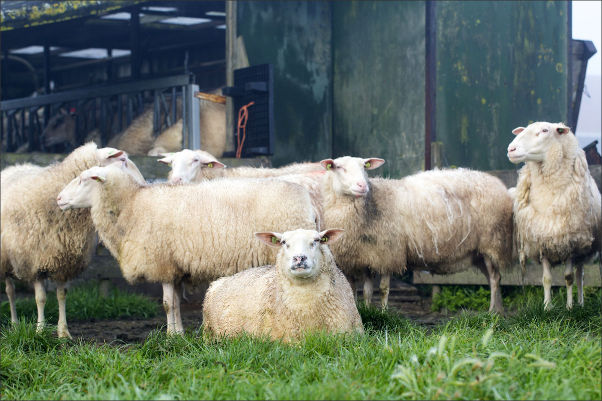 Foto’s van de schapen in de weide en de schapenkazen in de opslag.