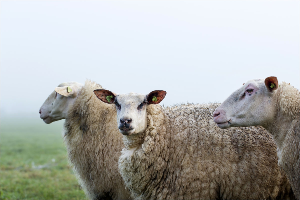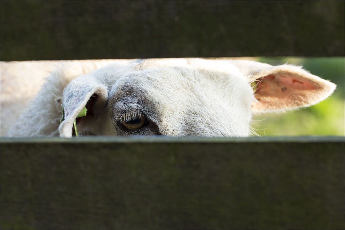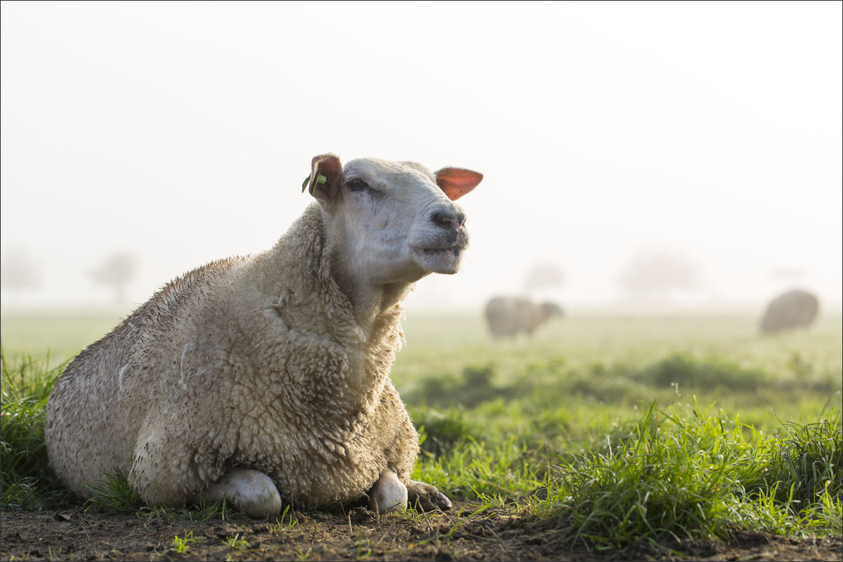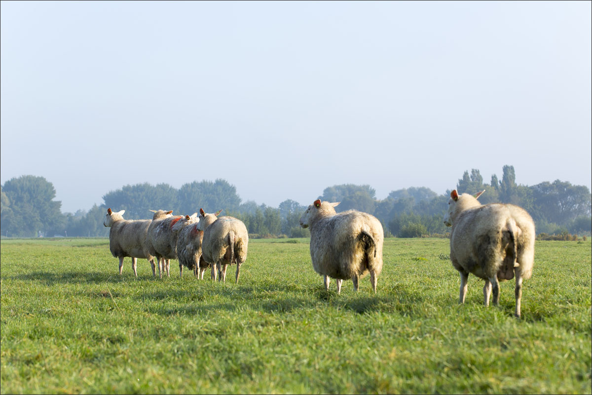 Foto’s van de schapen in de weide en de schapenkazen in de opslag.