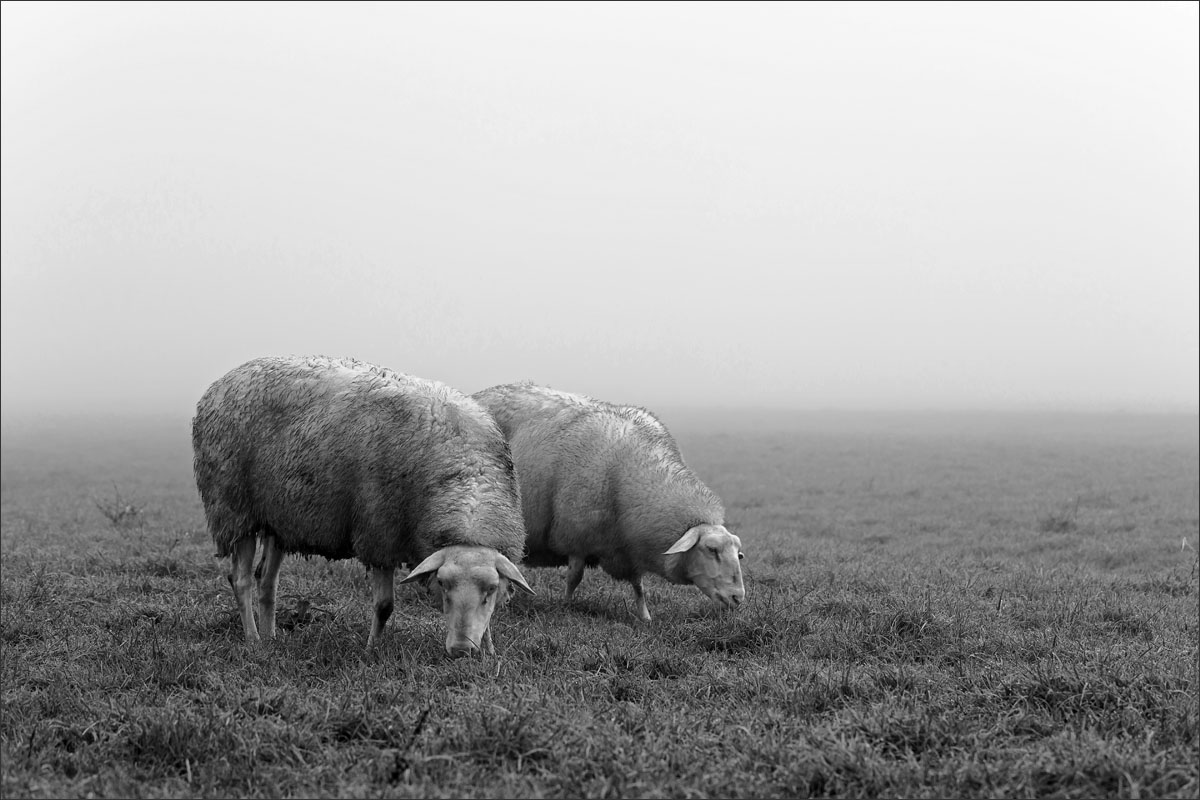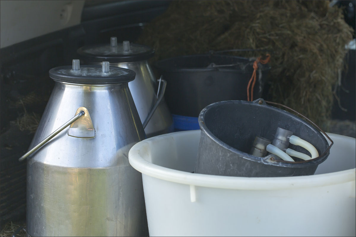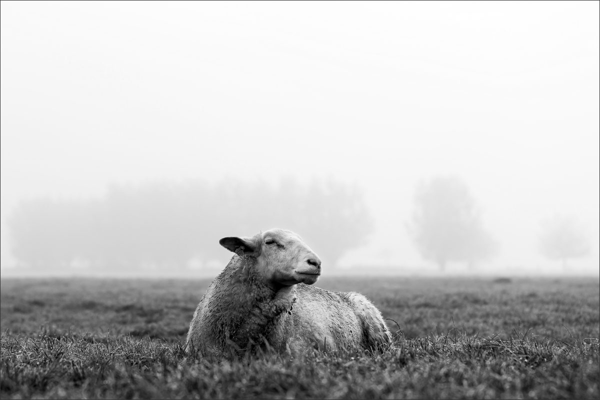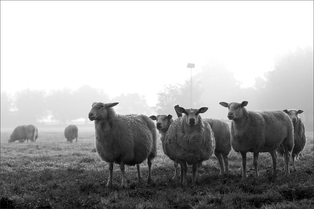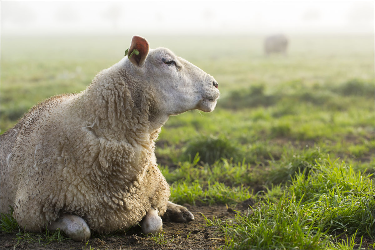 Foto’s van de schapen in de weide en de schapenkazen in de opslag.