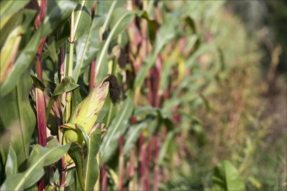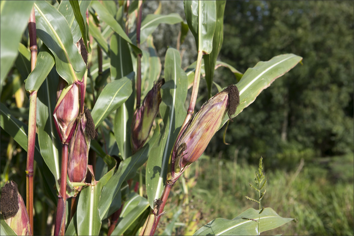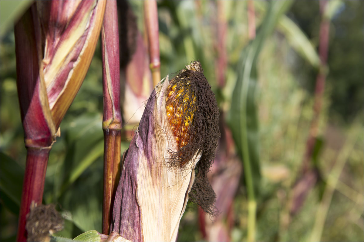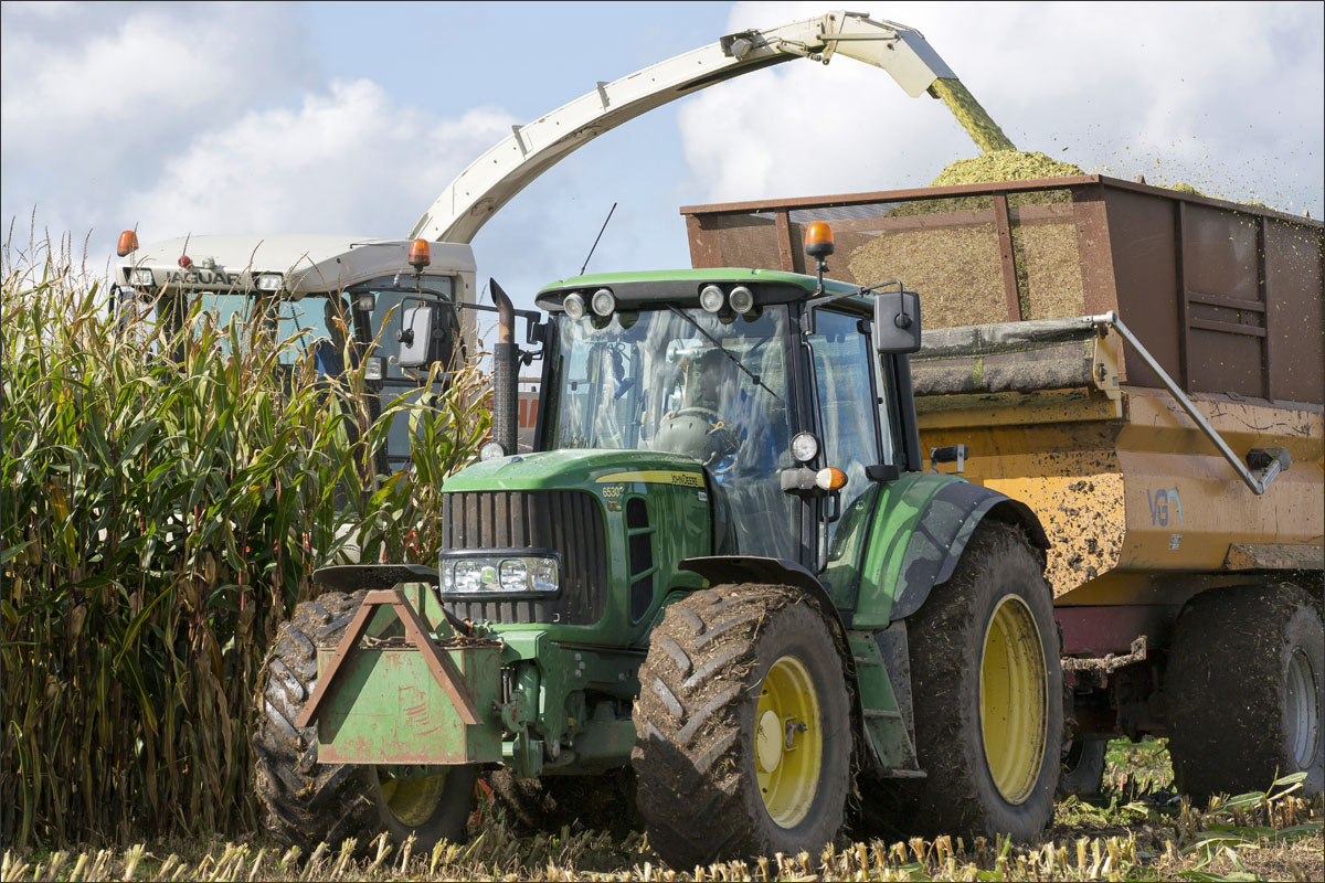 Foto’s van het zaaien van de maïs, de ontwikkeling (groei) en het hakselen van de snijmaïs.