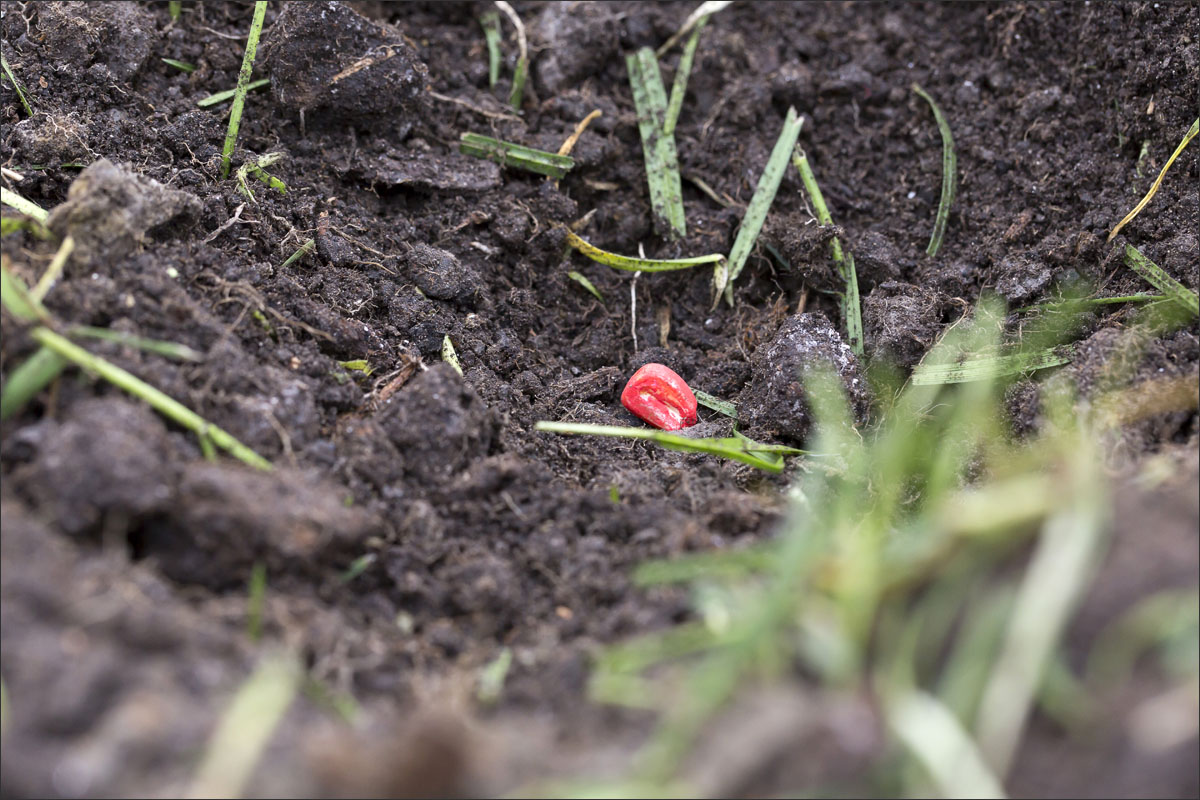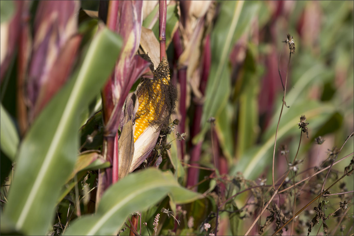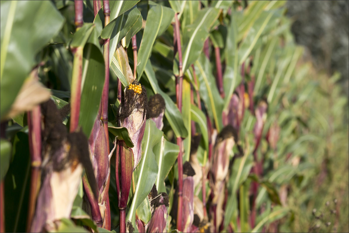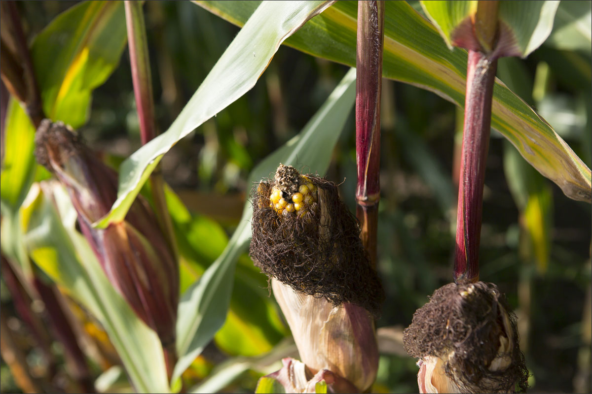 Foto’s van het zaaien van de maïs, de ontwikkeling (groei) en het hakselen van de snijmaïs.