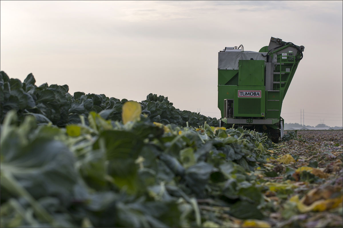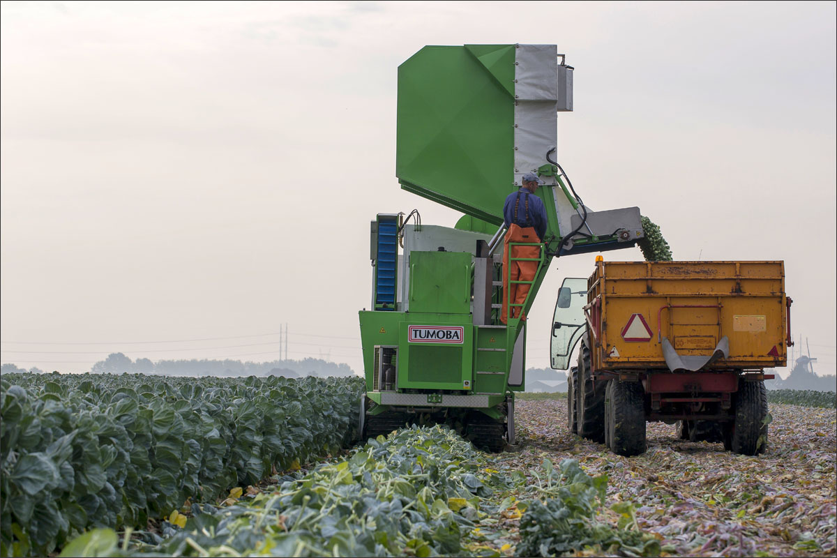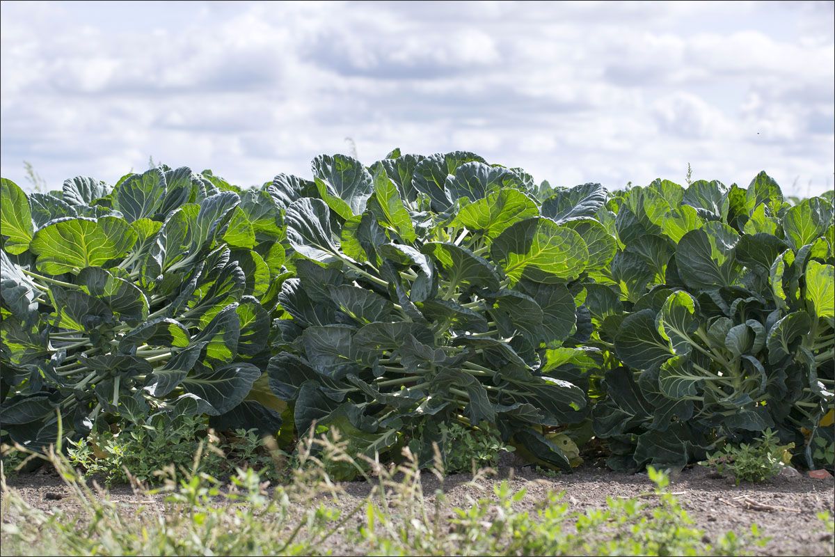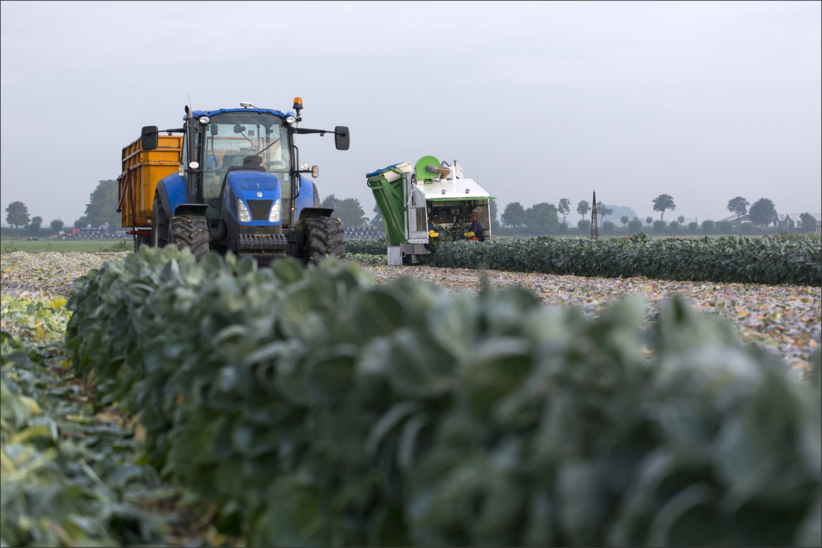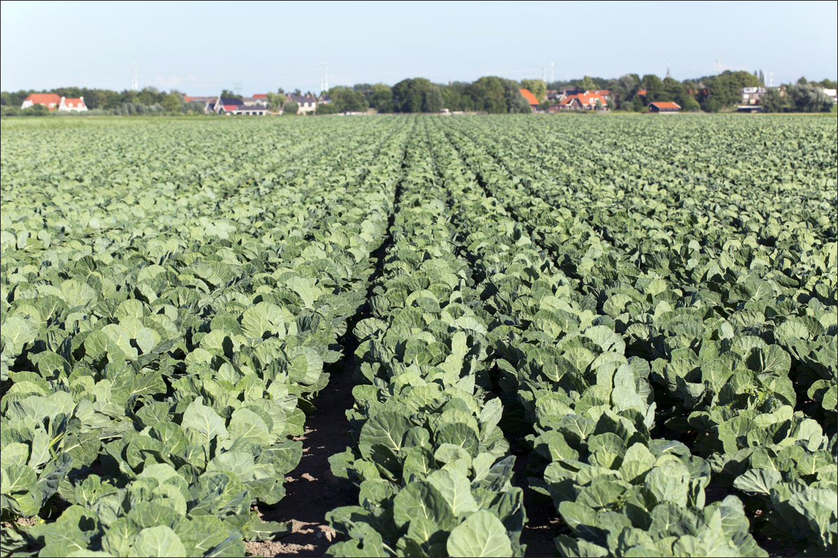 Foto’s van de spruitkoolplanten op de akkers van akkerbouwbedrijf Zonneveld uit Gelderswoude.