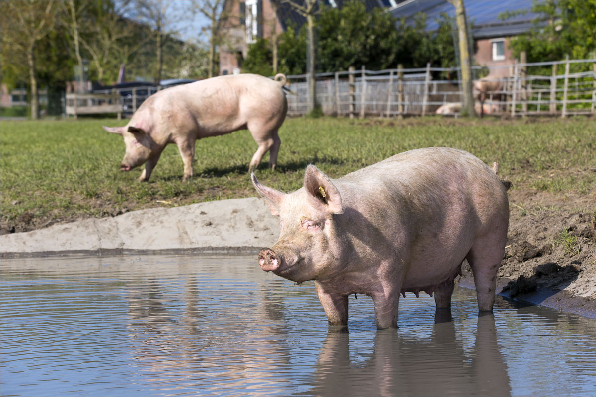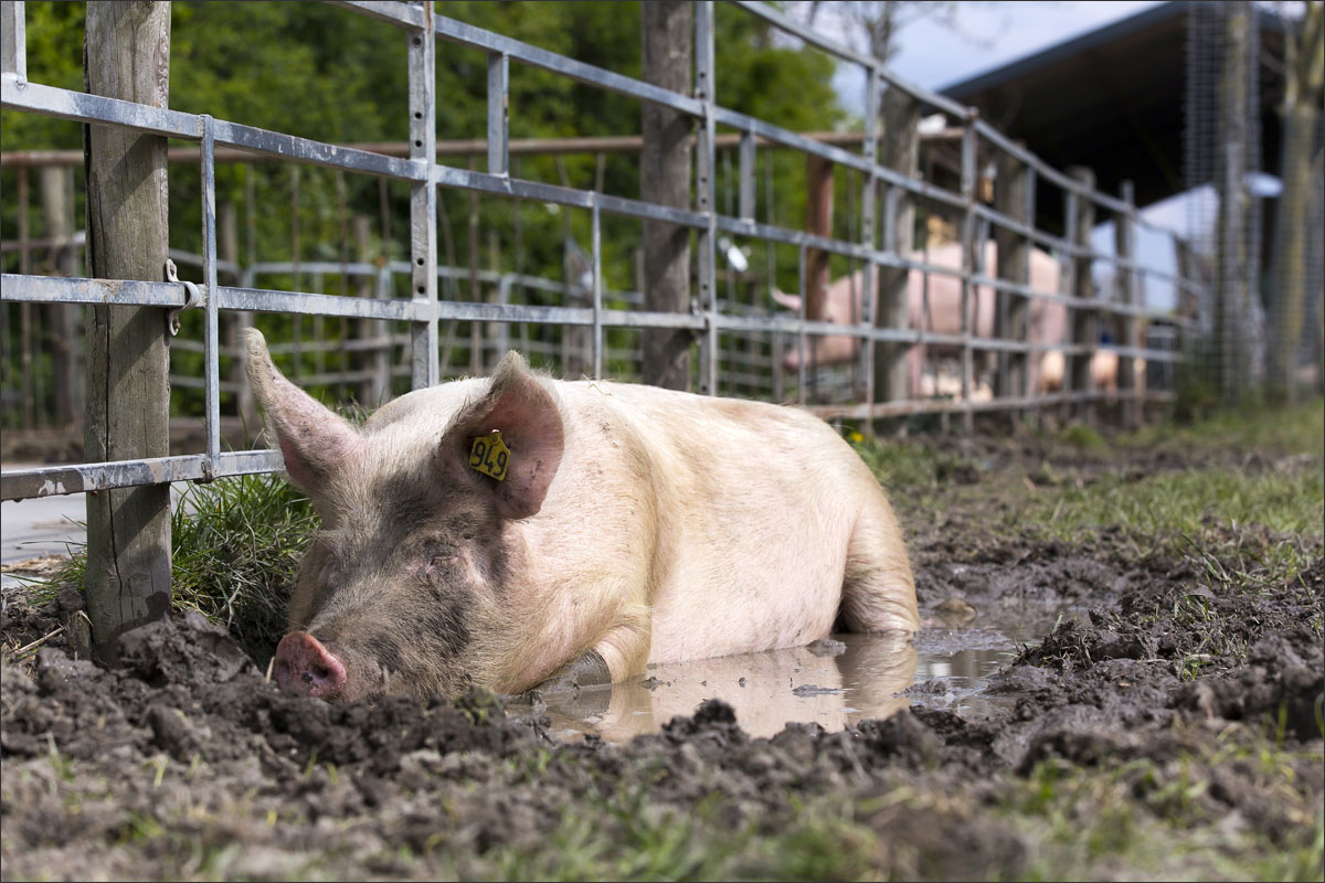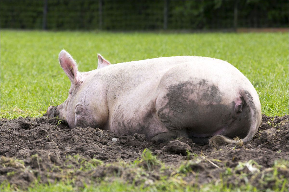 Foto’s van varkens, lopend en liggend in de groene weide. Met de neus in de bagger. Genieten van het zonnetje........