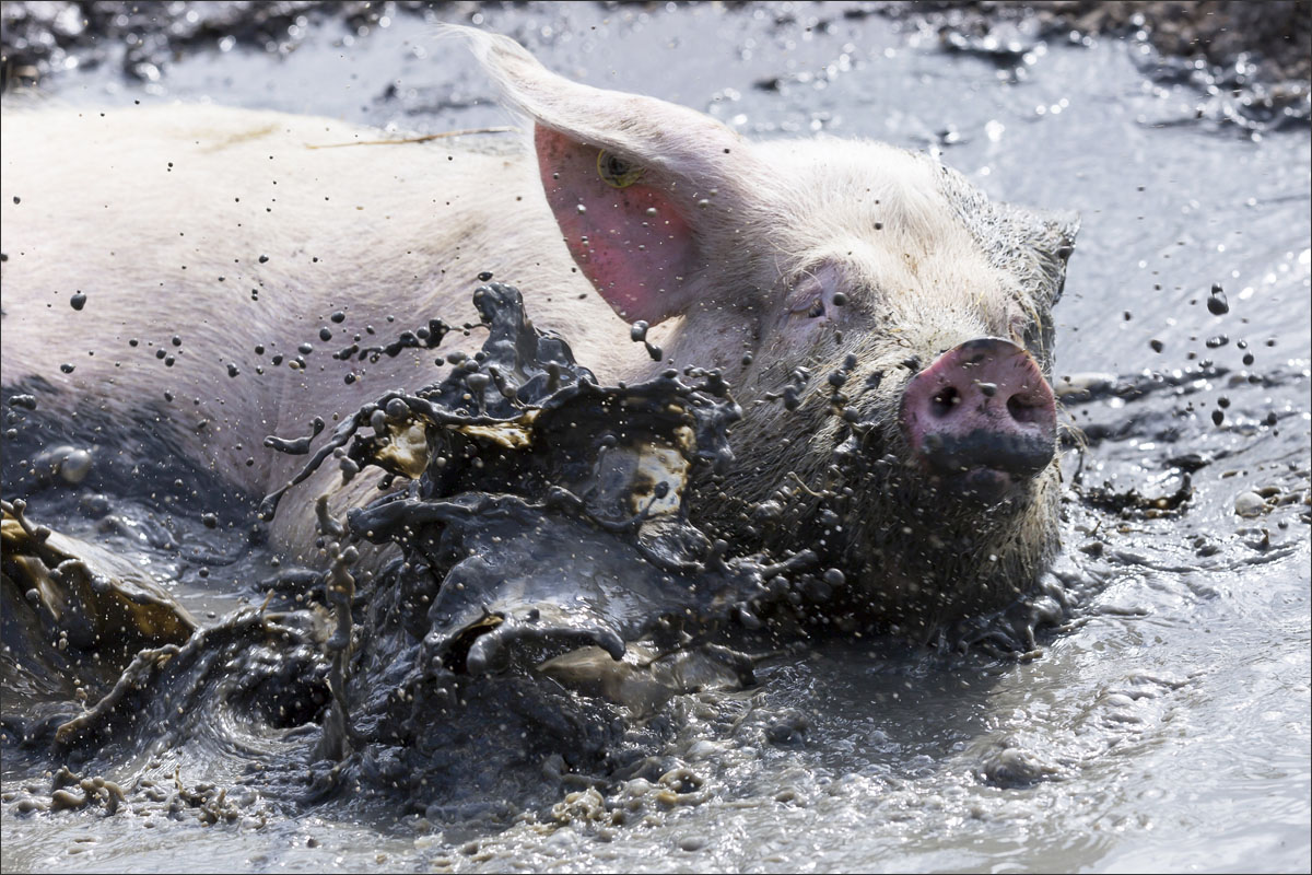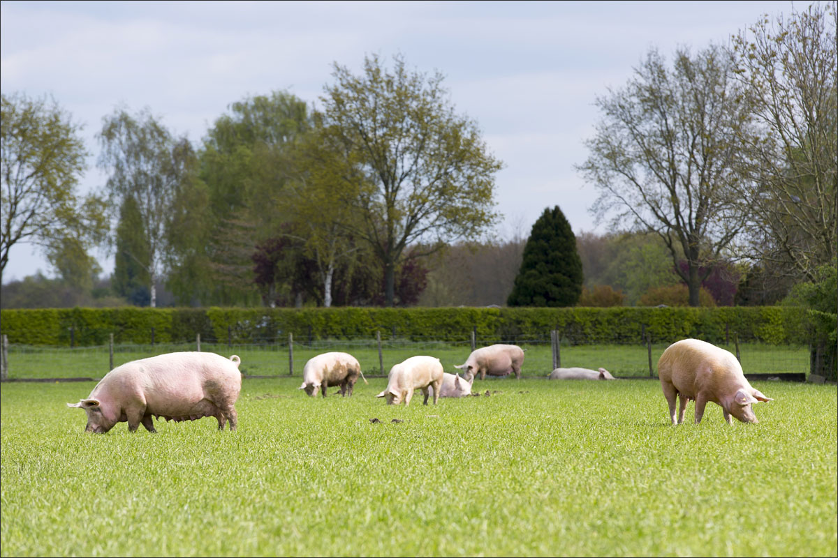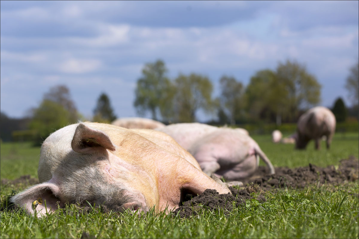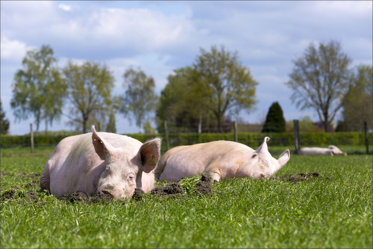 Foto’s van varkens, lopend en liggend in de groene weide. Met de neus in de bagger. Genieten van het zonnetje........