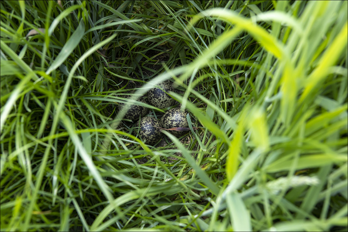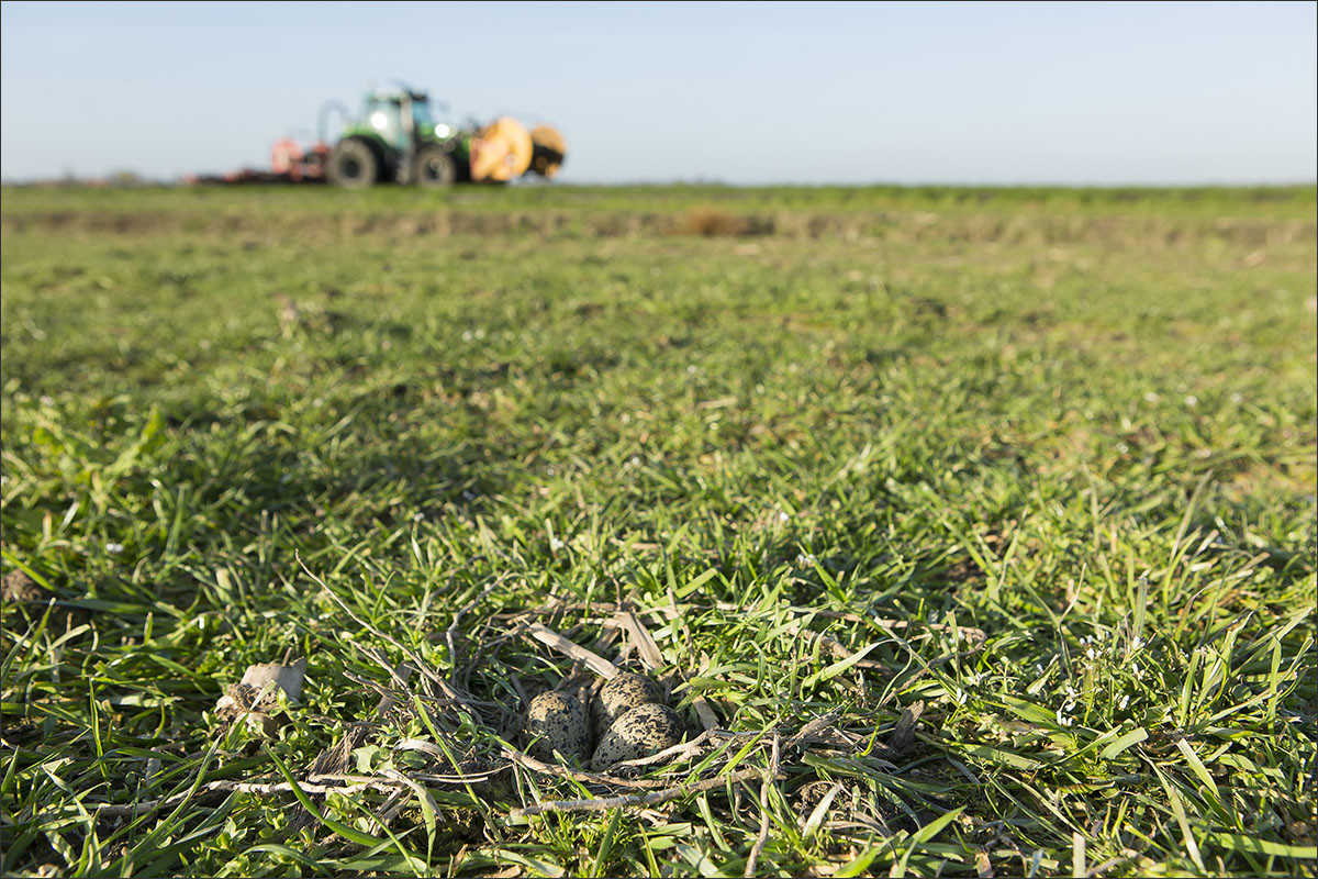 Voordat er werd bemest op het grasland is er door de weidevogelbescherming gekeken of dat er al nesten lag. Daar is netjes langsheen bemest. Er werd een nestbescherming, bij bemesten met sleepslang, over het nest gezet.
